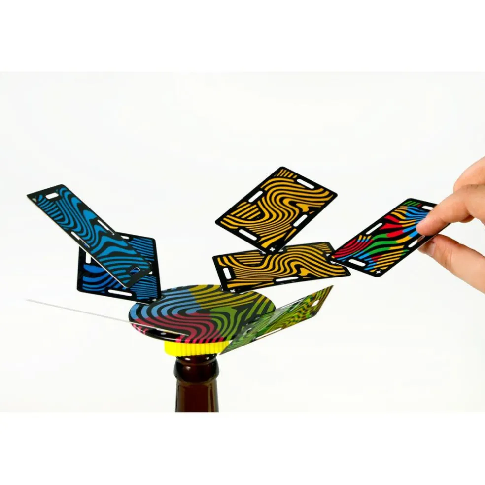 Het 999 Games Cards vs Gravity kaartspel is een uitdagend spel waarbij spelers kaarten op een fles balanceren. Elke kaart moet in een kaart van dezelfde kleur gestoken of eraan gehangen worden. Een magnetische schijf zorgt voor extra stabiliteit, maar als er kaarten vallen, krijg je strafpunten. Dankzij de waterdichte kaarten is het spel overal te spelen, zelfs buiten. Dit dynamische en spannende spel is perfect voor grotere groepen en biedt volop entertainment voor jong en oud.