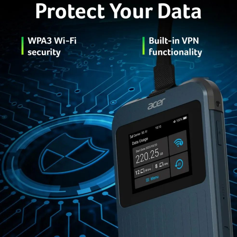De Acer Connect ENDURO M3 biedt niet alleen uitstekende connectiviteit, maar ook geavanceerde beveiliging. Met WPA3 en ingebouwde VPN-functionaliteit worden uw gegevens beschermd en blijven ze anoniem.