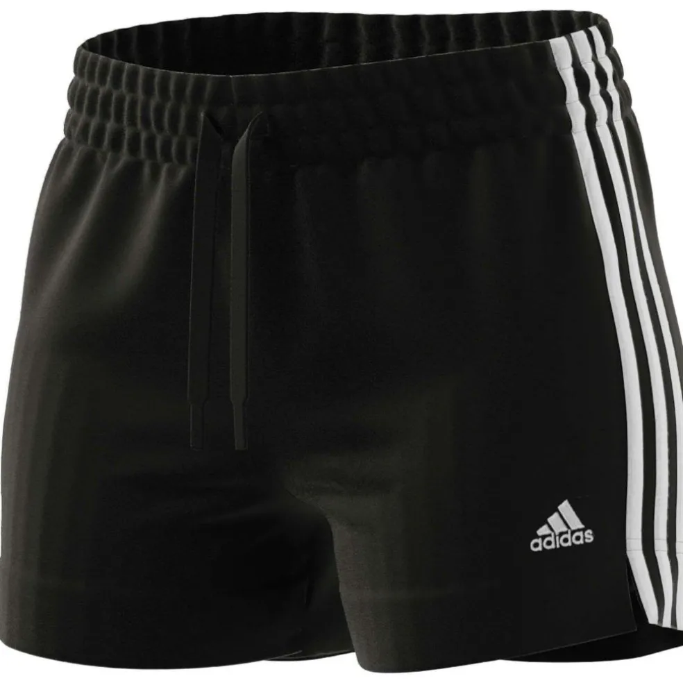 De adidas Essential Slim 3-Stripes short voor dames heeft een strak model, maar voorziet u door de splitten aan de zijkanten nog altijd van voldoende bewegingsvrijheid.
