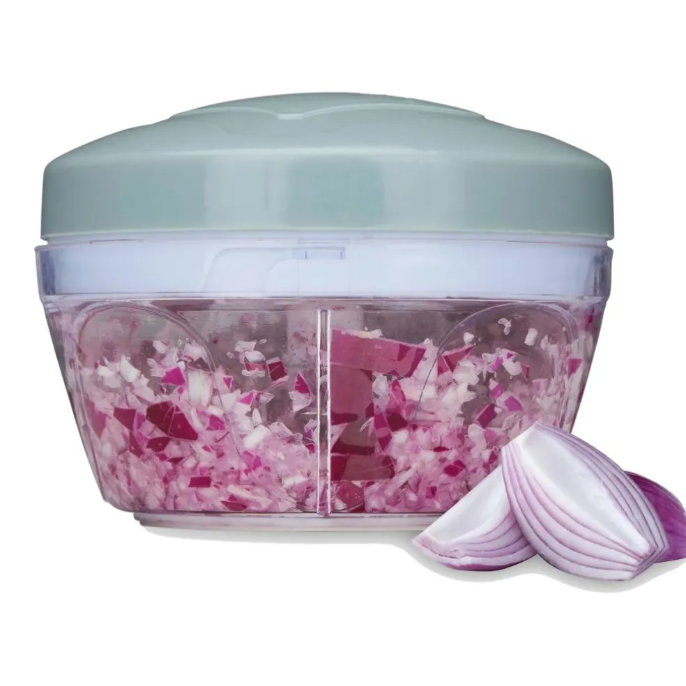 Deze Chopper Speedy hakmolen van Alpina is ideaal als u snel en gemakkelijk ingrediënten wilt snijden. Doe het ingrediënt in de Chopper en trek aan de lus. Hoe vaker u aan de lus trekt, hoe kleiner de stukjes zullen worden. De messen in de Hakmolen zijn gemaakt van RVS.