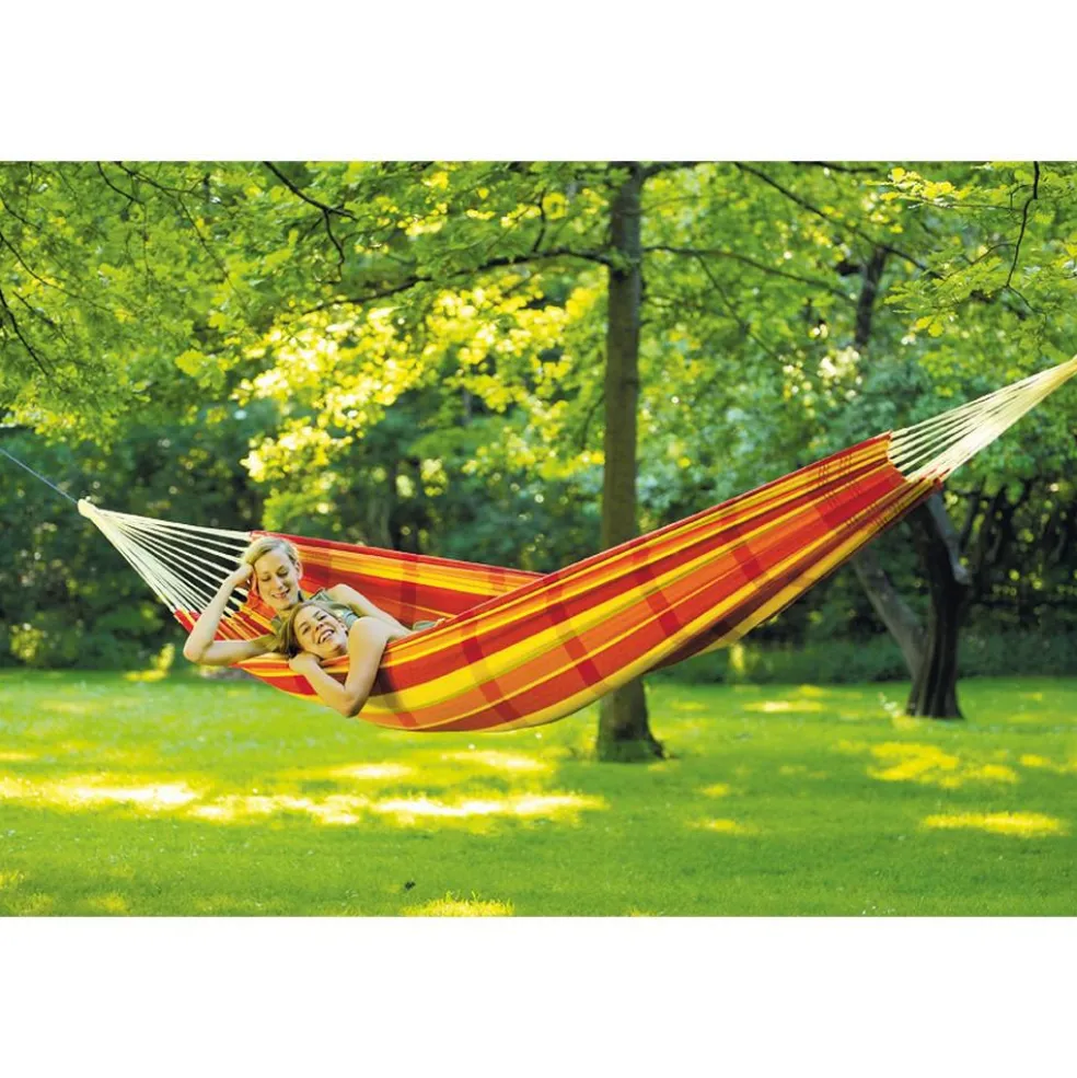 De Amazonas Barbados hangmat heeft zomerse kleuren en is gemaakt van duurzame en sterke materialen. In deze hangmat van Amazonas passen maar liefst twee personen. Daarnaast krijgt u bij deze zachte hangmat een opbergtas.