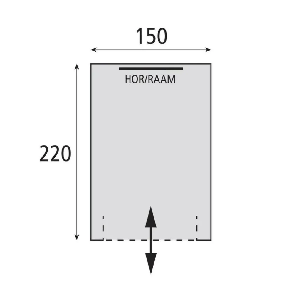 - Met een vloermaat van 220 x 150 cm en 190 cm nokhoogte heeft u stahoogte en voldoende diepte voor bijvoorbeeld twee fietsen of een campingkeuken.