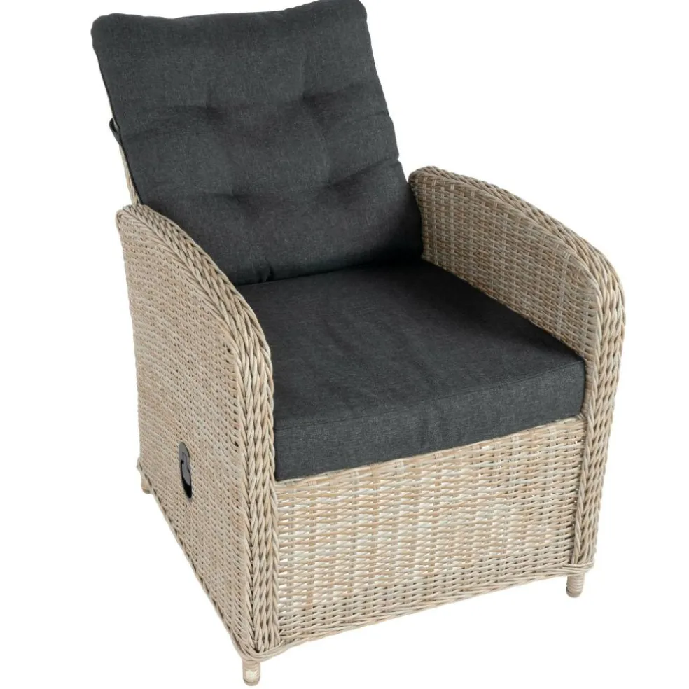 De Bardani Atlantic tuinstoelen zijn gemaakt van hoogwaardig wicker in de kleur mexican sand. Samen met het aluminium frame zorgt dit materiaal voor een sterke, lichtgewicht stoel die weinig onderhoud nodig heeft. De stoelen hebben een verstelbare rugleuning zodat deze stoel u van alle comfort voorziet. De zit- en rugkussens in de stoelen zijn antracietgrijs en zijn bij de set inbegrepen.