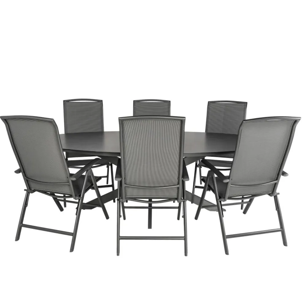 Met de Bardani Varesse 240 x 108 cm Capri 6 tuinset kunt u heerlijk genieten van lange avonden en zonnige lunches. Met de ruime tafel en zes comfortabele stoelen in stijlvol antraciet, brengt u moeiteloos sfeer en gemak naar uw tuin of terras. Genieten van het leven, dat doet u met de Bardani Varesse 240 x 108 cm Capri 6 tuinset.