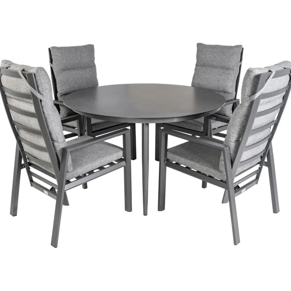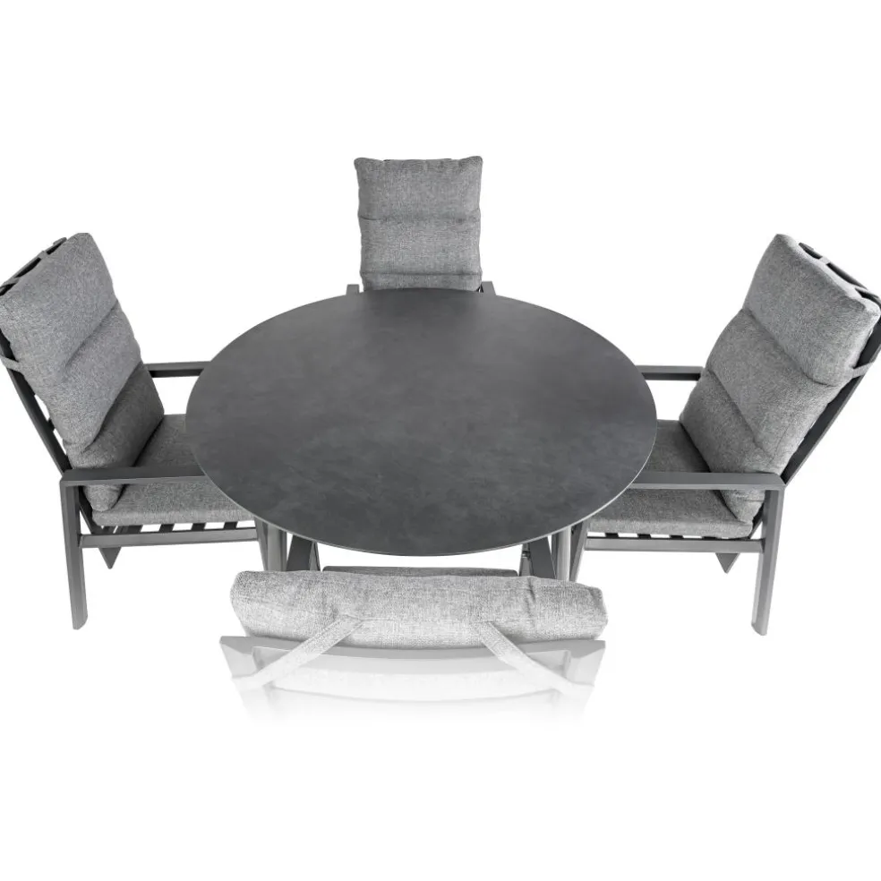 Deze Bardani Verdi Impera tuinset heeft een ronde tafel met een diameter van ø 130 cm wat genoeg ruimte biedt voor 4 personen. Het stevige aluminium frame en het glazen blad met keramiek erop zorgt voor een strakke uitstraling wat een must is voor in uw tuin. Door het comfortabele kussen zit u de hele dag comfortabel in de tuin van het weer te genieten.