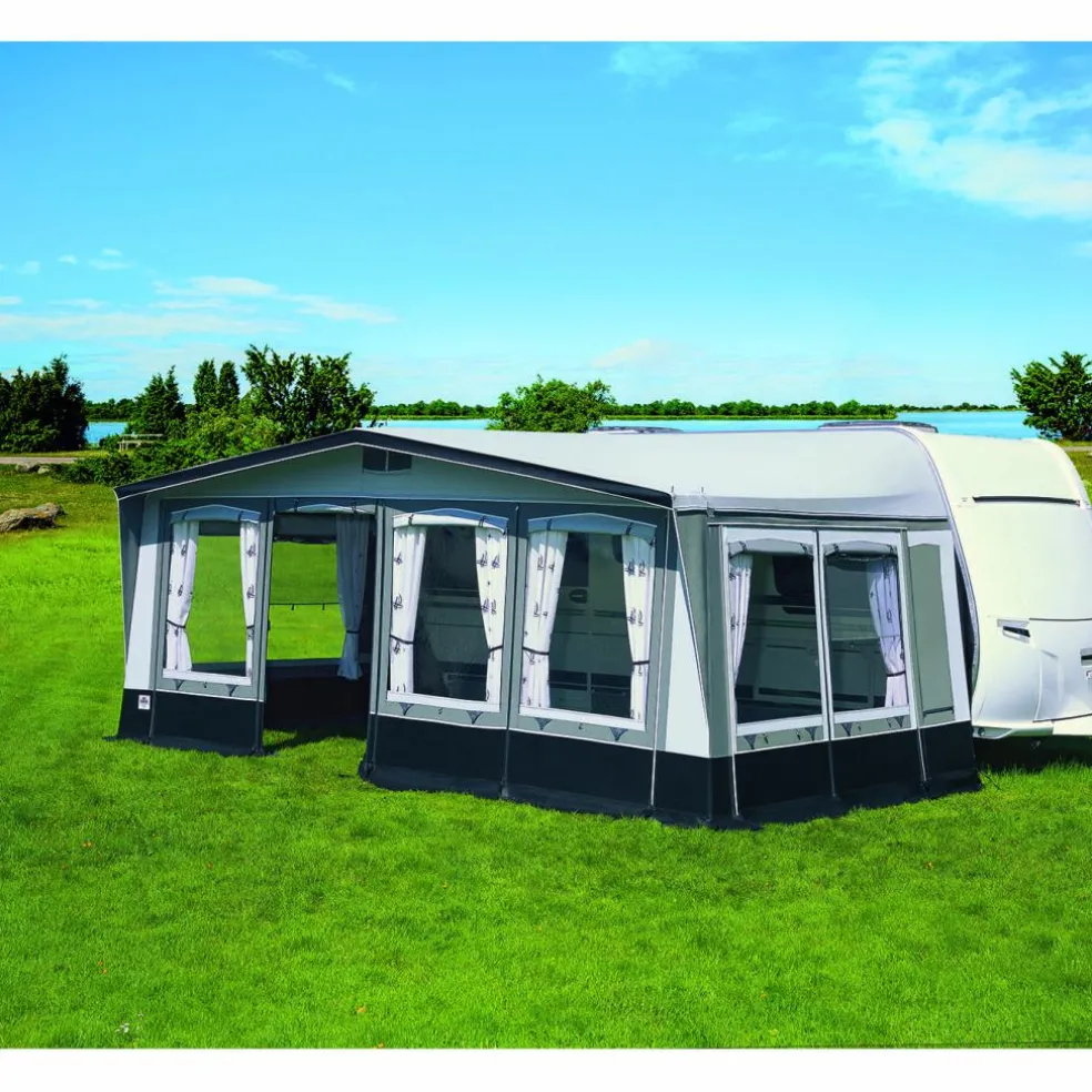 De Brand Palazzo 300 voortent is de ideale keuze voor seizoenskampeerders die op zoek zijn naar een robuuste en veelzijdige voortent. Met een diepte van 3 meter biedt deze voortent voldoende ruimte om te ontspannen en uw spullen op te bergen. Het stevige PVC dak zorgt voor een uitstekende bescherming tegen regen en sneeuw, terwijl het vochtregulerende TenCate All Season tentdoek u in alle seizoenen comfortabel houdt. Deze voortent is ontworpen voor zowel lange zomerse vakanties als koude wintermaanden, met een sterke en betrouwbare constructie die het hele jaar door bescherming biedt.