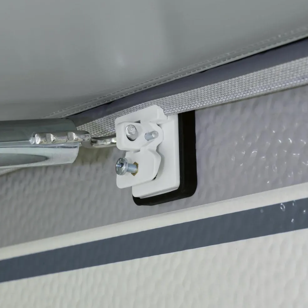 Met het SHS schroefloos bevestigingssysteem van Brand is het overbodig om permanente tentogen op uw caravan te schroeven. Dankzij een innovatief en stabiel klemmechanisme worden de SHS-blokjes stevig bevestigd aan de speciale extra pees. U kunt de blokjes moeiteloos op de juiste positie vastklemmen en vervolgens handmatig fixeren met de fixatieschroef. Deze unieke oplossing biedt niet alleen gemak en stabiliteit, maar elimineert ook de noodzaak van schroefbevestigingen, waardoor uw caravan vrij blijft van permanente afdrukken.
