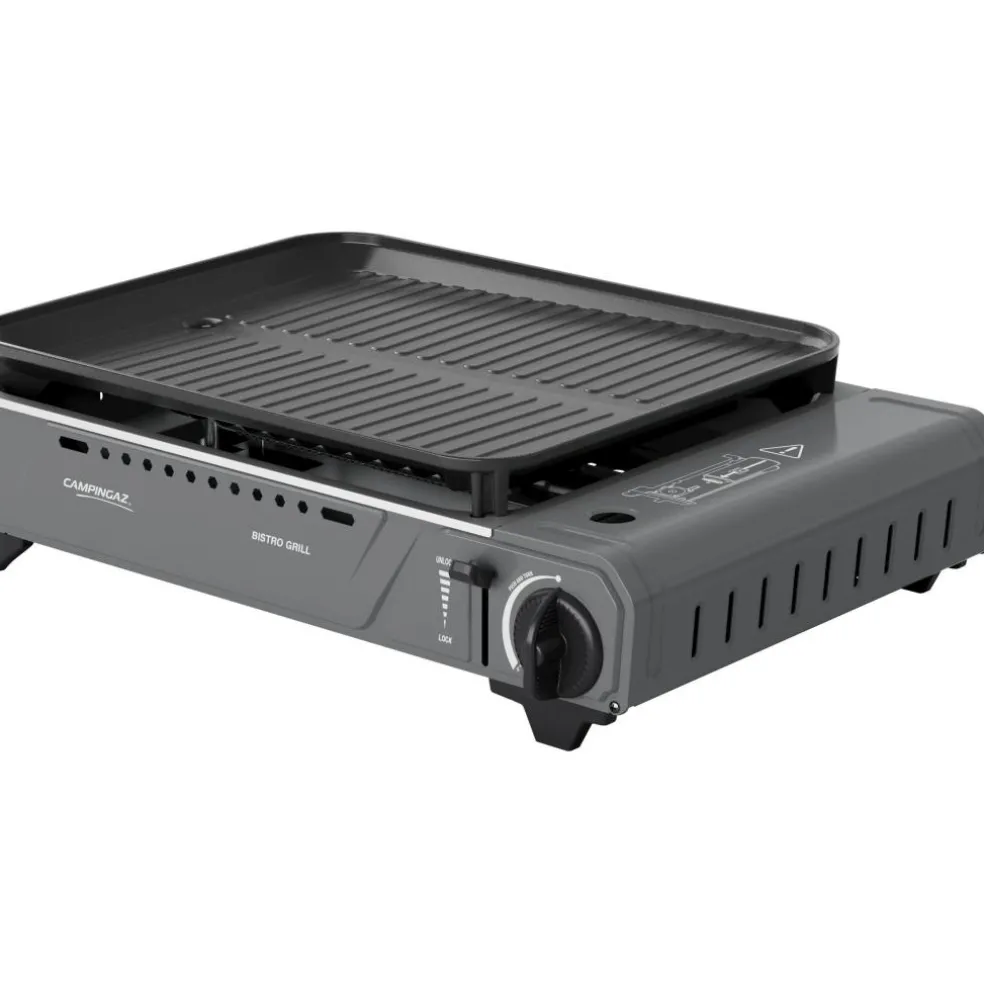 Dit Campingaz Bistro Grill kooktoestel heeft een compact formaat, waardoor u op de camping, op uw kleine balkon of heerlijk thuis makkelijk kunt grillen. Het kooktoestel is binnen 6 minuten verwarmd en heeft een antiaanbaklaag. Door het dubbel veiligheidssysteem wordt de gasstroom onderbroken bij oververhitting. De grill werkt op CP250-gaspatroon.
