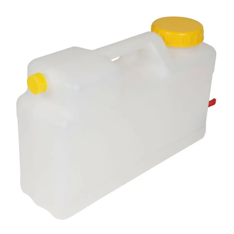 Deze Comet Universeel Jerrycan DIN 96 12 liter is een draagbare watertank geschikt voor drinkwater. De handgreep in de watertank is geïntegreerd en hierdoor kan de jerrycan comfortabel worden gedragen. De jerrycan is voorzien van een 3/4 inch schroefdraad met een aftapkraan. Daarnaast is de jerrycan uitgevoerd met een extra schroefdraad waarop de dop gedraaid kan worden. Zo is de jerrycan gemakkelijk af te sluiten en kan er geen vuil bij komen. Door de grote halsopening kunnen de meest voorkomende dompelpompen gestoken worden.