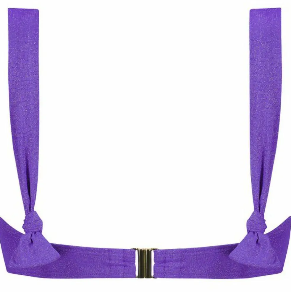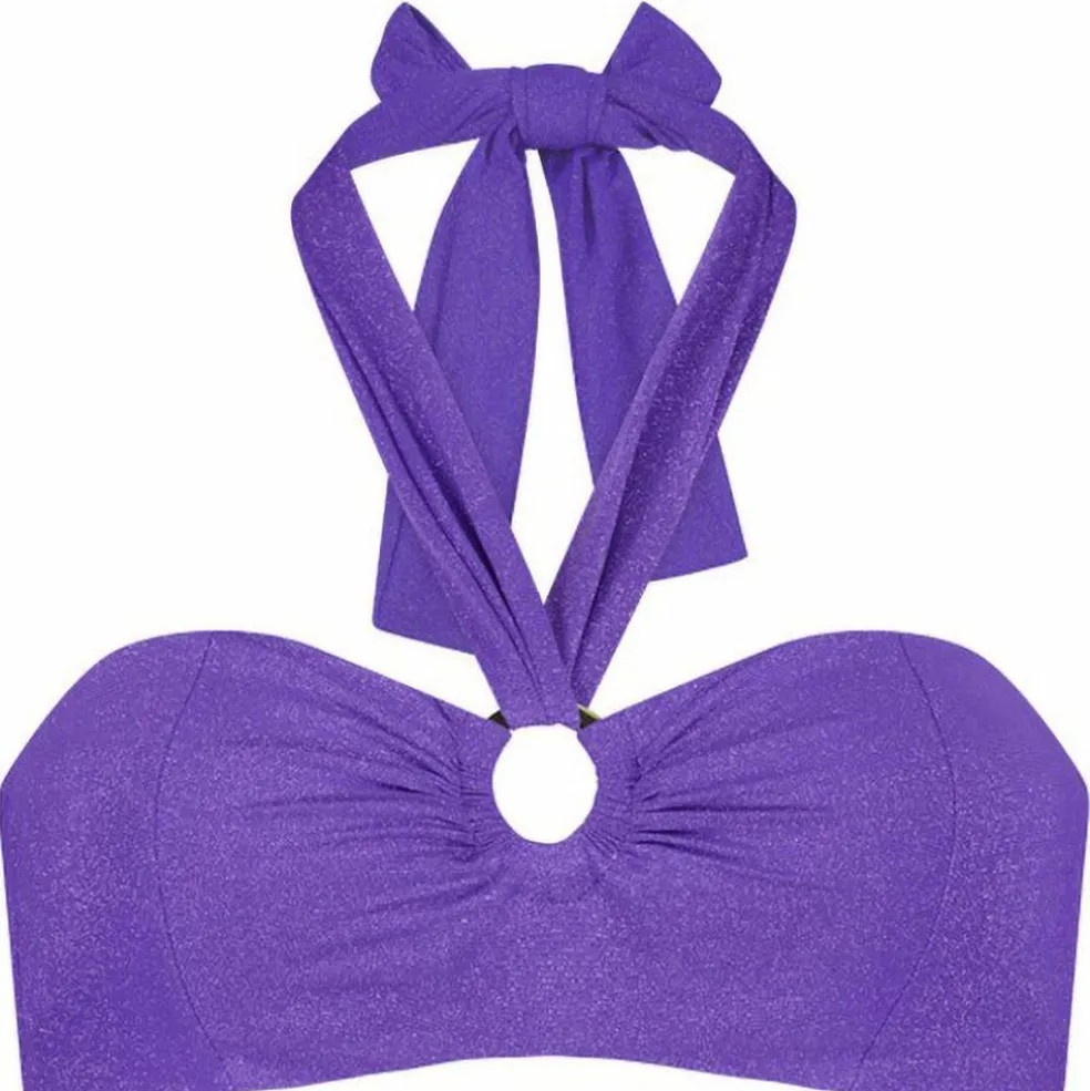 De CYELL Evening Glam Padded bikini top is elegant en sprankelend. Deze prachtige bikini top van CYELL is gemaakt van glitterend paars materiaal en heeft een decoratieve ring tussen de cups. U kunt het nekbandje aan de ring bevestigen om de top als halter te dragen, maar de top kan ook strapless of met schouderbandjes gedragen worden.