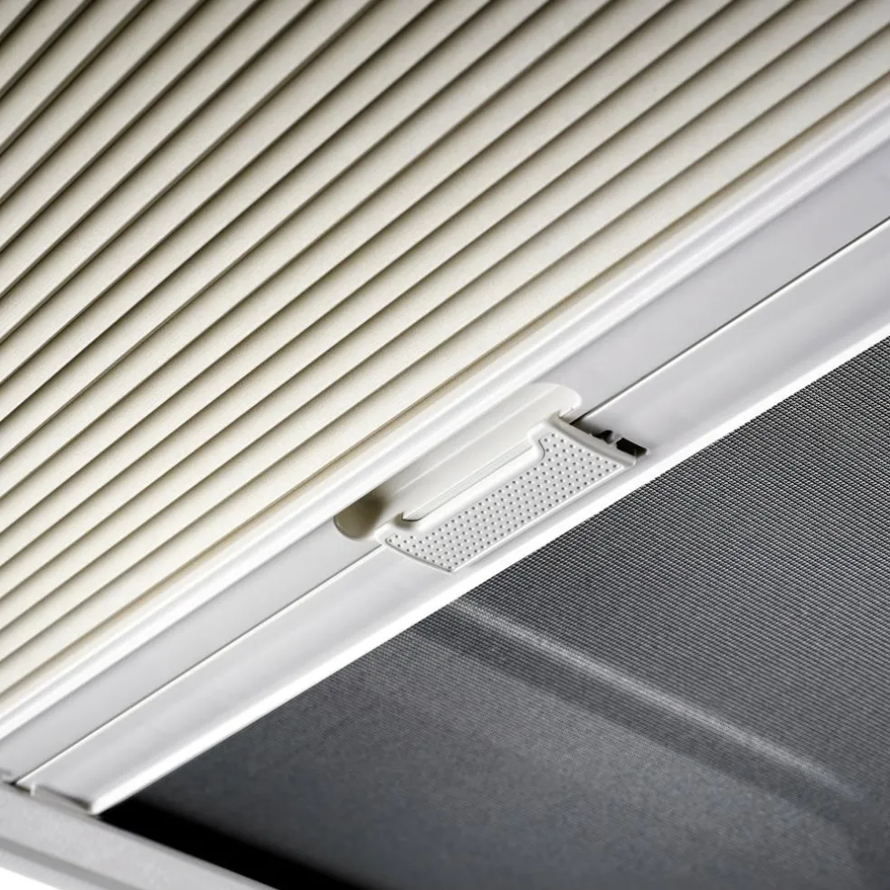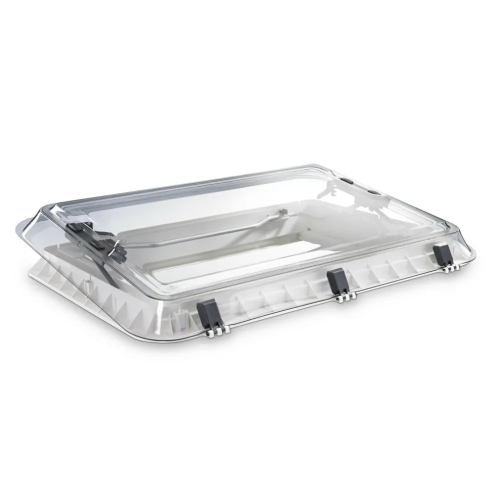 Het dakraam is voorzien van dubbele acrylbeglazing en geforceerde ventilatie zodat u altijd frisse lucht in uw caravan heeft. Het dakluik is voorzien van een hor en verduistering. Het dakraam is eenvoudig te bedienen en verstelbaar in 3 posities. De maximale openingshoek is 55° graden.