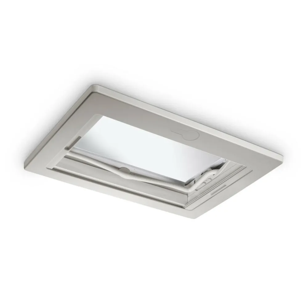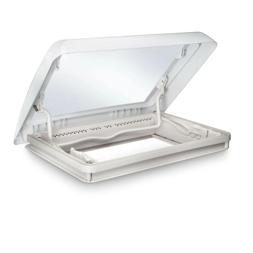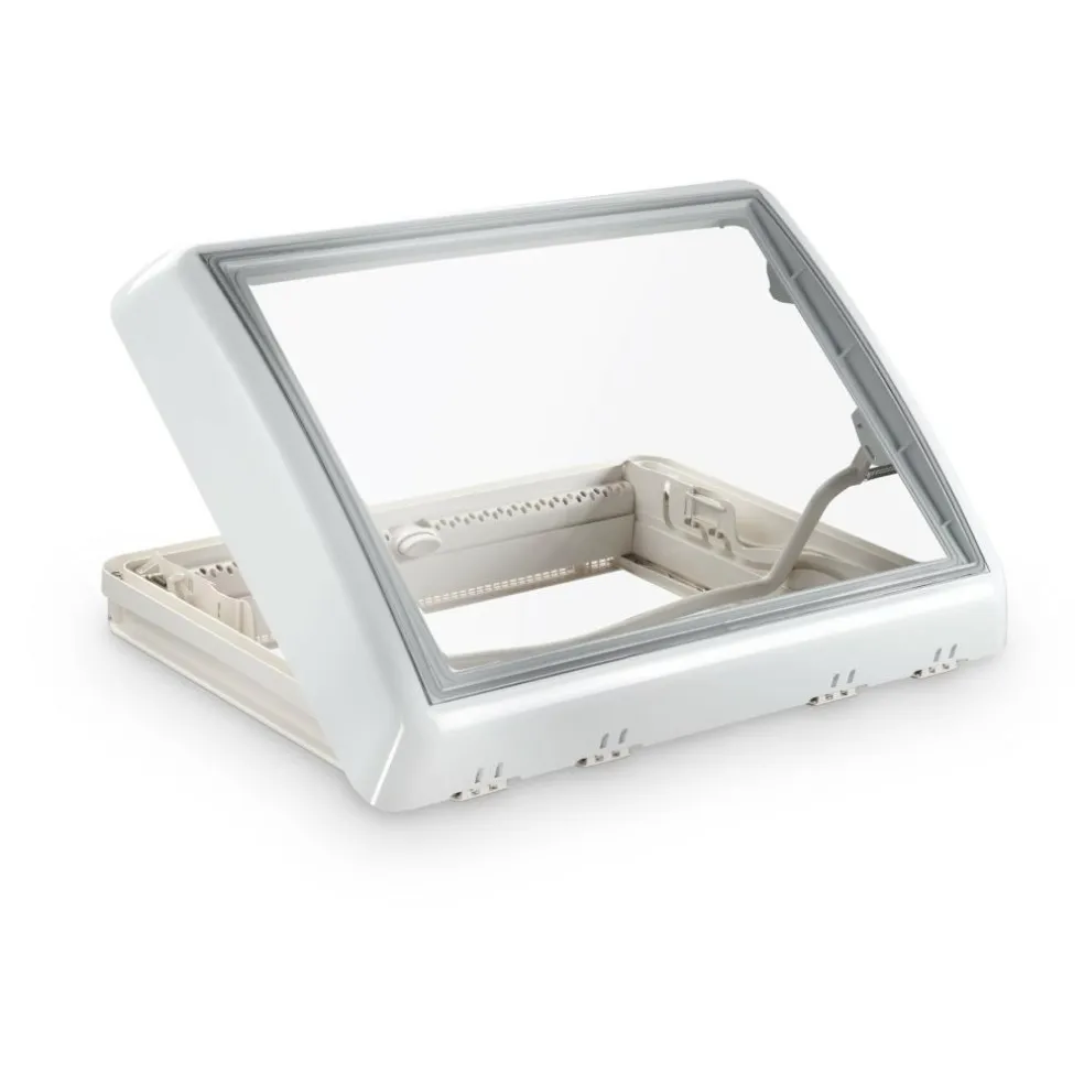 Het Midi Heki dakluik van Dometic is geschikt voor campers en caravans met een gatmaat van 70 x 50 centimeter en brengt volop licht en lucht in uw voertuig. Dit Midi Heki dakluik is voorzien van een afsluitend rubber zodat er geen permanente ventilatie – en ook geen tocht – is als het luik gesloten is. Een dakluik zonder ventilatie kan prettig zijn wanneer het luik boven het slaapgedeelte geplaatst wordt, dit type dakluik wordt dan ook het meest toegepast in campers.