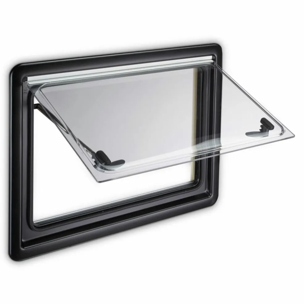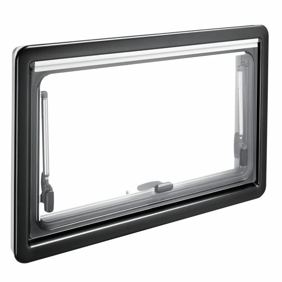 Het raam is uitgerust met telescopische raamuitzetters. Met deze uitzetters kunt u het raam in verschillende standen openen. Hierdoor bepaalt u zelf hoeveel frisse lucht er naar binnen kan komen. Het raam bestaat uit dubbel acrylglas en het frame is gemaakt van polyurethaan. Het binnen- en buitenframe zijn aan elkaar geschroefd waardoor deze in de voertuigwand geklemd kan worden. Hierdoor gaat er geen warmte verloren.