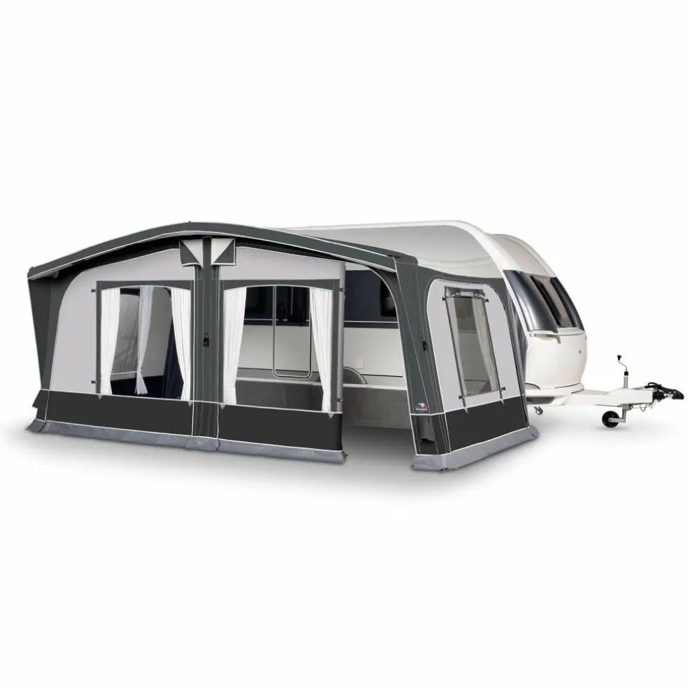 De Doréma Octavia Air 240 in anthracite is een opblaasbare voortent met een diepte van 240 centimeter die u in korte tijd stevig opzet. Dankzij het stabiele luchtframe en de rechte wanden creëert u merkbaar meer leefruimte aan uw caravan. Ideaal voor seizoenskampeerders die comfort willen en voor rondreizigers die snel willen opbouwen en afbreken.
