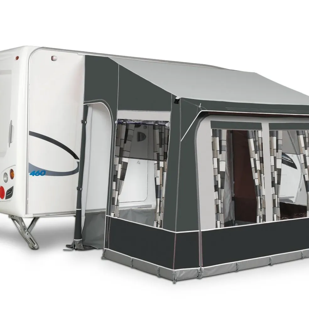 Compact, sterk en flexibel: de Doréma Quattro deeltent in antraciet maakt van de zijkant van uw caravan een comfortabele, beschutte ruimte. Met zijn 225 x 200 cm vloermaat biedt de Doréma Quattro voldoende plek voor twee stoelen en een tafel, terwijl het 25 mm stalen frame direct vertrouwen geeft. Zo creëert u snel extra leefruimte, ook wanneer de standplaats wat krapper is.