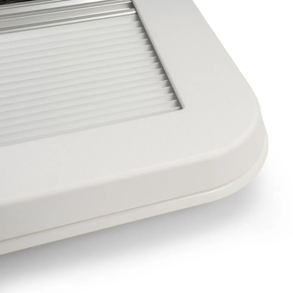 Het DWS Camping RV dakluik heeft een aerodynamische vorm en een stabiele constructie. Het DWS dakluik is handmatig snel te openen en vast te zetten met een aluminium stang. De kap van het dakluik is gemaakt van UV-bestendig materiaal. Het binnenframe is voorzien van een hor en verduisteringsgordijn, die door middel van een magneetfunctie met elkaar verbonden zijn. Daarnaast is het kader voorzien van dimbare LED-verlichting die rondom zit met een 12 V DC aansluiting. De verlichting is dimbaar in drie standen en warm-wit van kleur. Dit dakluik heeft geen permanente ventilatie.