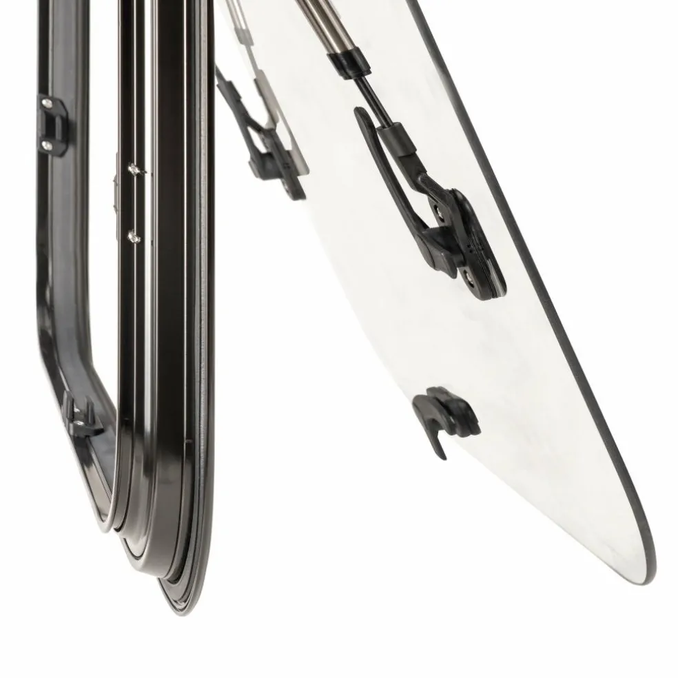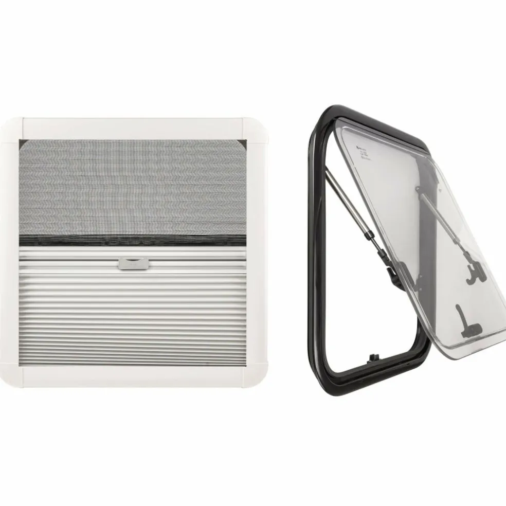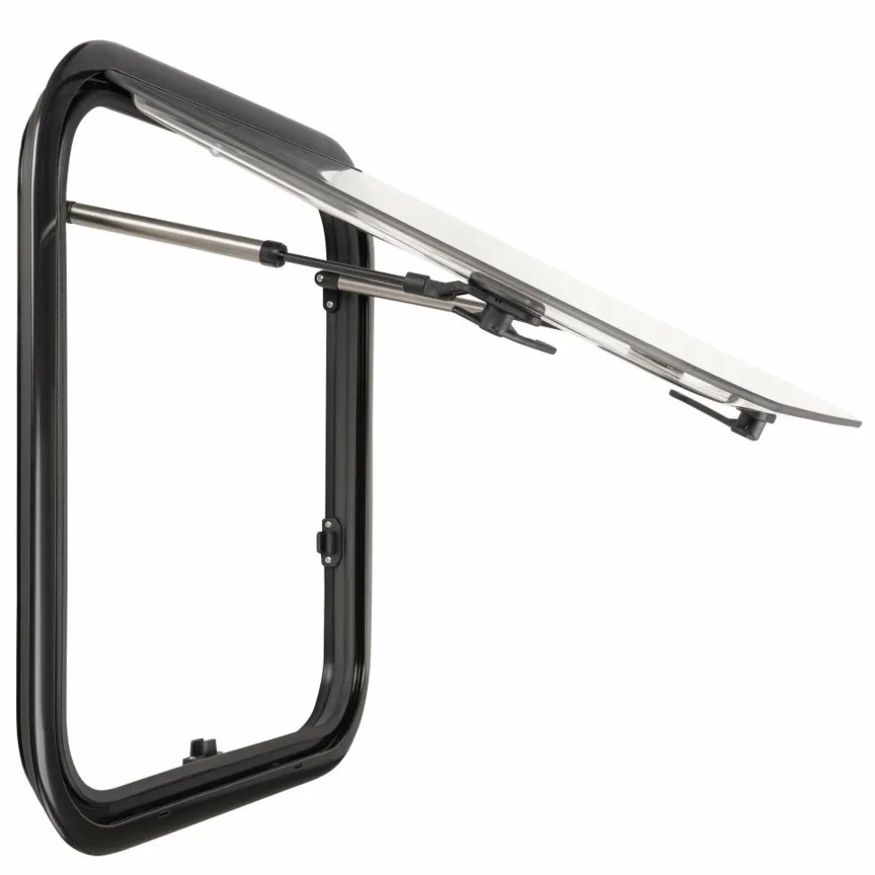 Het DWS Camping Klapraam transparant is gemaakt van dubbel acrylglas en komt met een frame dat gemaakt is van stevig gepoedercoat aluminium. Dit raam bestaat uit een buitenframe en een binnenkader die met schroeven aan elkaar zijn bevestigd. Dankzij de meegeleverde combihor houdt u insecten buiten en kunt u lichtinval reguleren. De veiligheidsgrendel zorgt ervoor dat het raam niet van buitenaf open gemaakt kan worden. De telescopische armen maken het mogelijk om het raam op verschillende standen open te zetten. Het meegeleverde inbouwframe kunt u als sjabloon gebruiken voor het monteren van het raam.