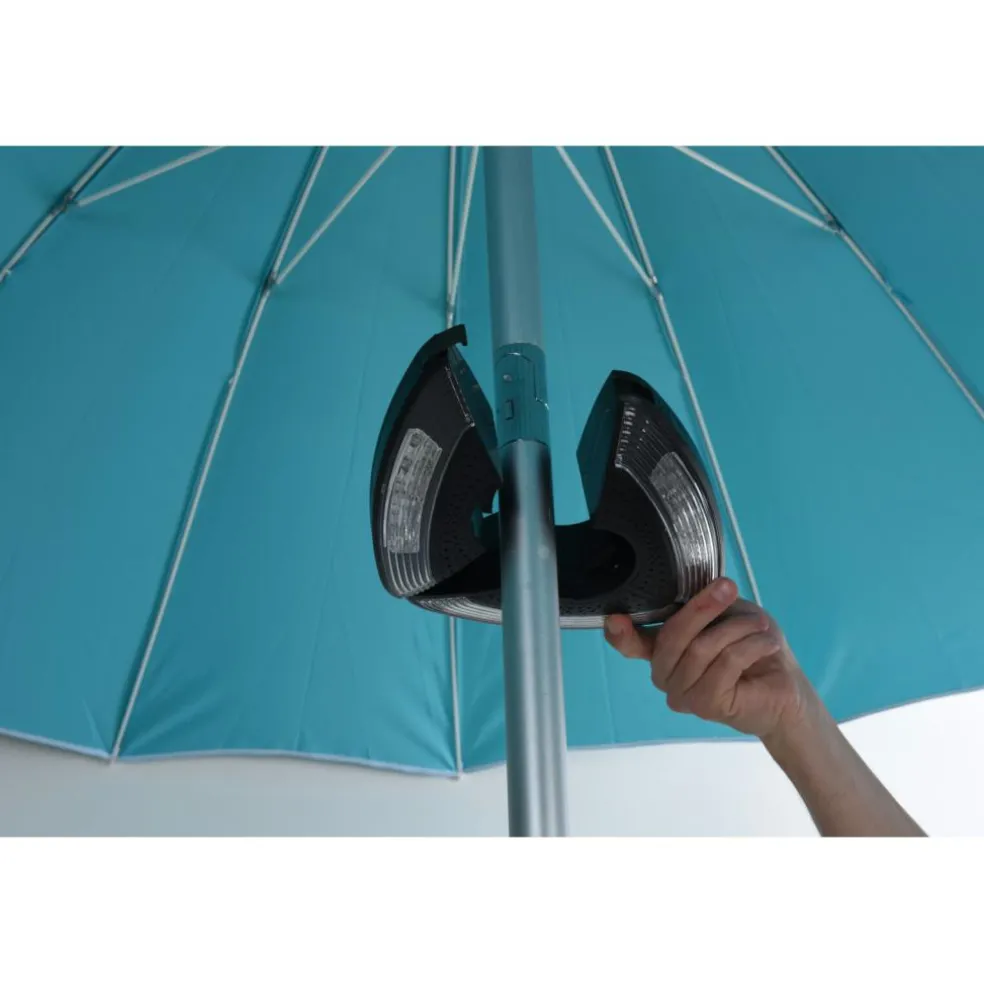De DWS parasolverlichting heeft een driehoekvorm en deze kan op een buisdikte van 38 tot 48 millimeter. De grootte van de lamp is 19 centimeter.