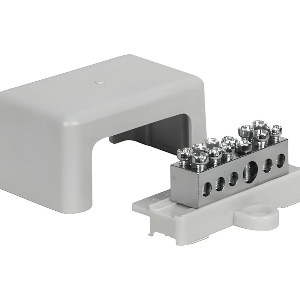 Deze DWS verdeelstrip helpt om alle stroomkabels te verzamelen en deze aan te sluiten op één aansluiting. Deze strip heeft de volgende aansluitingen: 1x ronde geleider 6-16mm² en 5x ronde geleiders 1,5-10mm².