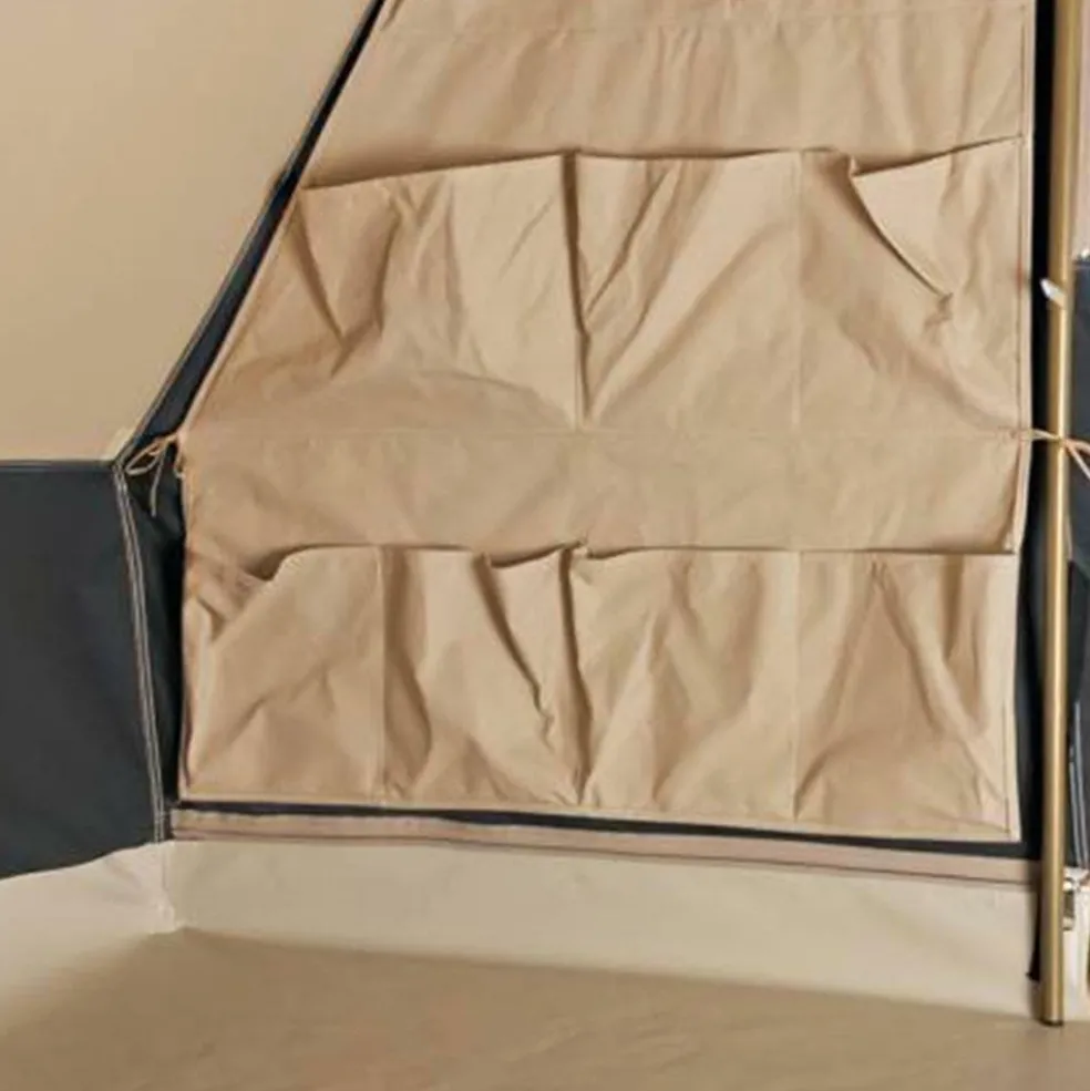 De buiten- en binnentent zijn uitgevoerd in katoen, waarbij het buitendoek met 340 g/m² stevig en duurzaam is. Dankzij het ademende karakter van katoen ervaart u minder condens, blijft het binnen koeler bij warmte en voelt het aangenamer aan tijdens langere kampeerdagen. In combinatie met de waterafstotende afwerking houdt het doek u bij regen gewoon droog.
