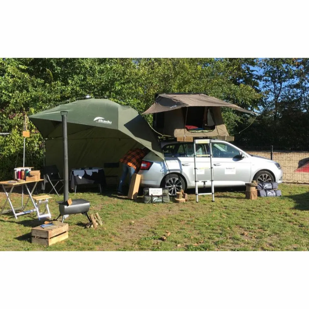 De Femkes RooftopTents Skadu Too luifel met zijwanden groen is ideaal bij ieder type (kampeer)auto. Dankzij deze handige luifel met drie zijwanden kunt u uit de wind en in de schaduw zitten naast of achter de auto. En hij creëert meteen wat extra privacy. Ook kan de Skadu luifel gewoon los worden opgezet: het pakket bevat vier extra stokken en scheerlijnen. Het enige wat u nog hoeft te regelen zijn de haringen, passend bij de ondergrond.