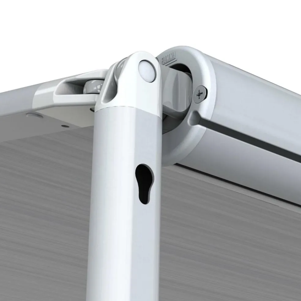 Dankzij het armverstellingssysteem kunt u eenvoudig het doek strakker of losser spannen. Het doek van de Caravanstore 310 loopt tussen de liggers in plaats van er overheen. Hierdoor gaat het doek niet klapperen met stormachtig weer.