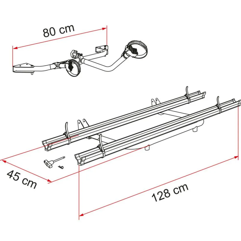 De Fiamma Carry-Bike Garage Standard fietsendrager heeft een draagvermogen van maximaal 50 kg. Met dit fietsenrek neemt u de fietsen eenvoudig mee op vakantie.