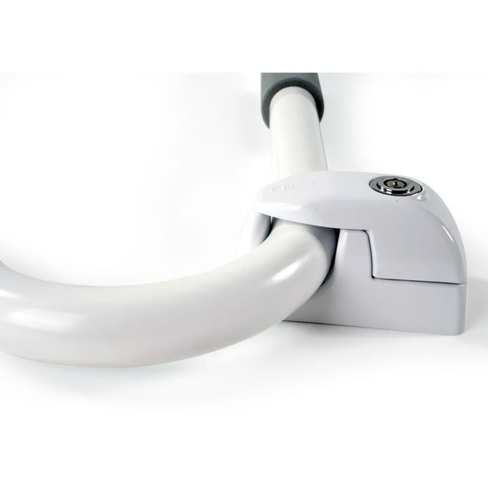 Slot voor beveiliging van de Fiamma veiligheidsbeugels Security 31 en Security 46. Te monteren op de deur van de caravan of camper. Dit slot biedt extra veiligheid omdat het een derde bevestigingspunt is en zodoende meer weerstand biedt. Compleet slot met sleutel en bevestigingsmateriaal. Gemaakt van stevig maar toch licht witgelakt aluminium.