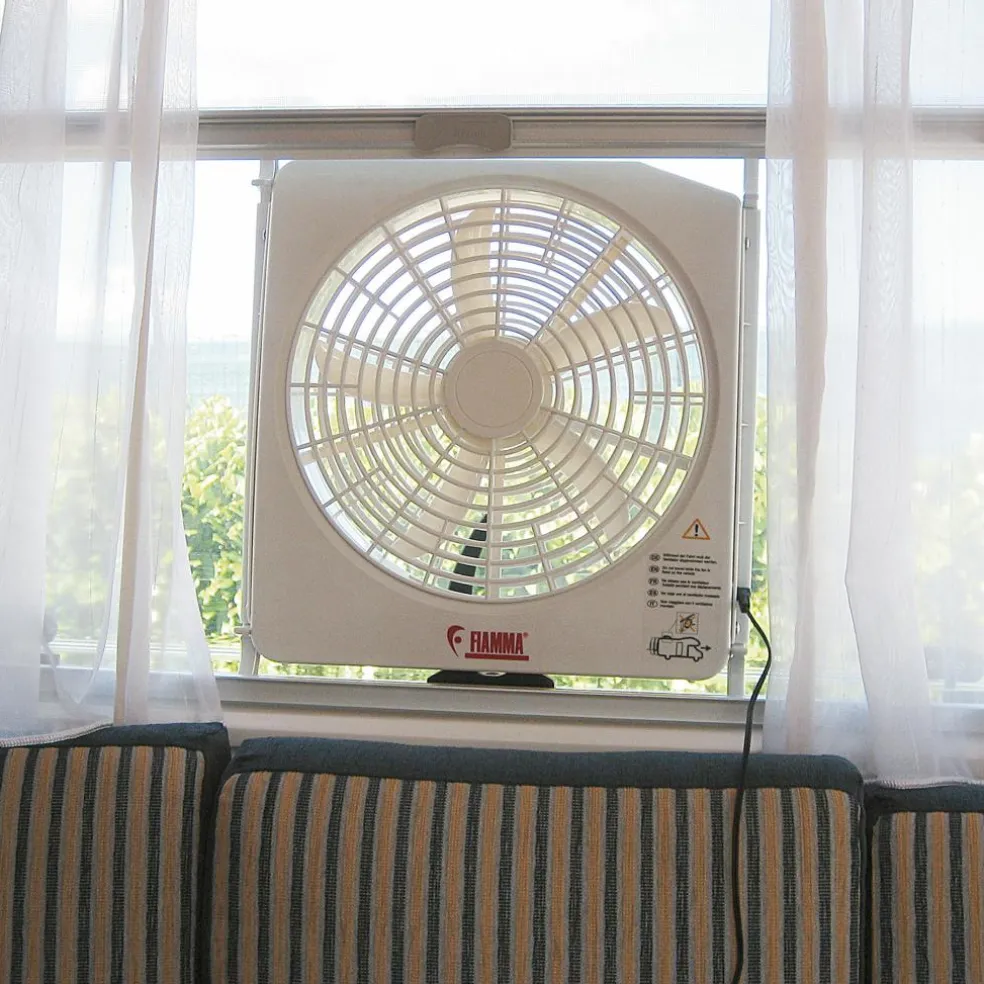 Deze 12 volt ventilator, met een fan met een diameter van 24 centimeter, kan zowel naar binnen als naar buiten blazen. Wanneer u in de caravan of camper zit kunt u de stekker omdraaien zodat de ventilator niet in uw nek blaast maar toch koelt door de warme lucht af te voeren.