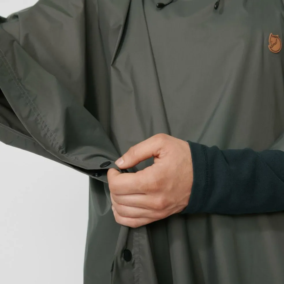 De Fjällräven Trekking Poncho is niet alleen waterdicht, maar ook ademend door het gebruikte membraan. Aan de zijkanten zijn drukknopen geplaatst. De poncho is lichtgewicht en de capuchon is verstelbaar. De ruglengte is 108 centimeter.