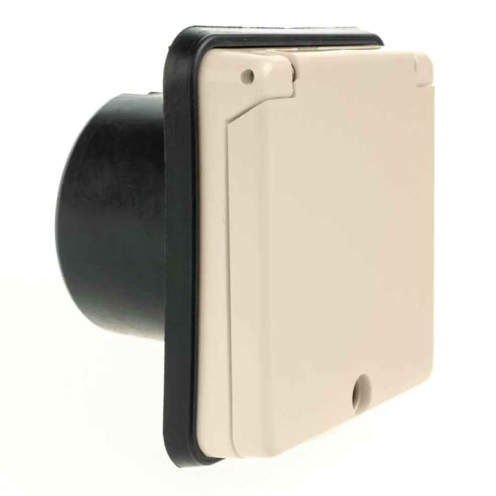 Deze inbouw uitvoerdoos van 230 volt is gemaakt voor het aansluiten van 230 volt vanaf uw camper of caravan. Ideaal om bijvoorbeeld een koelbox of koffiezetautomaat in de voortent aan te sluiten. Spatwaterdicht volgens IP44 en verkrijgbaar in verschillende kleuren.