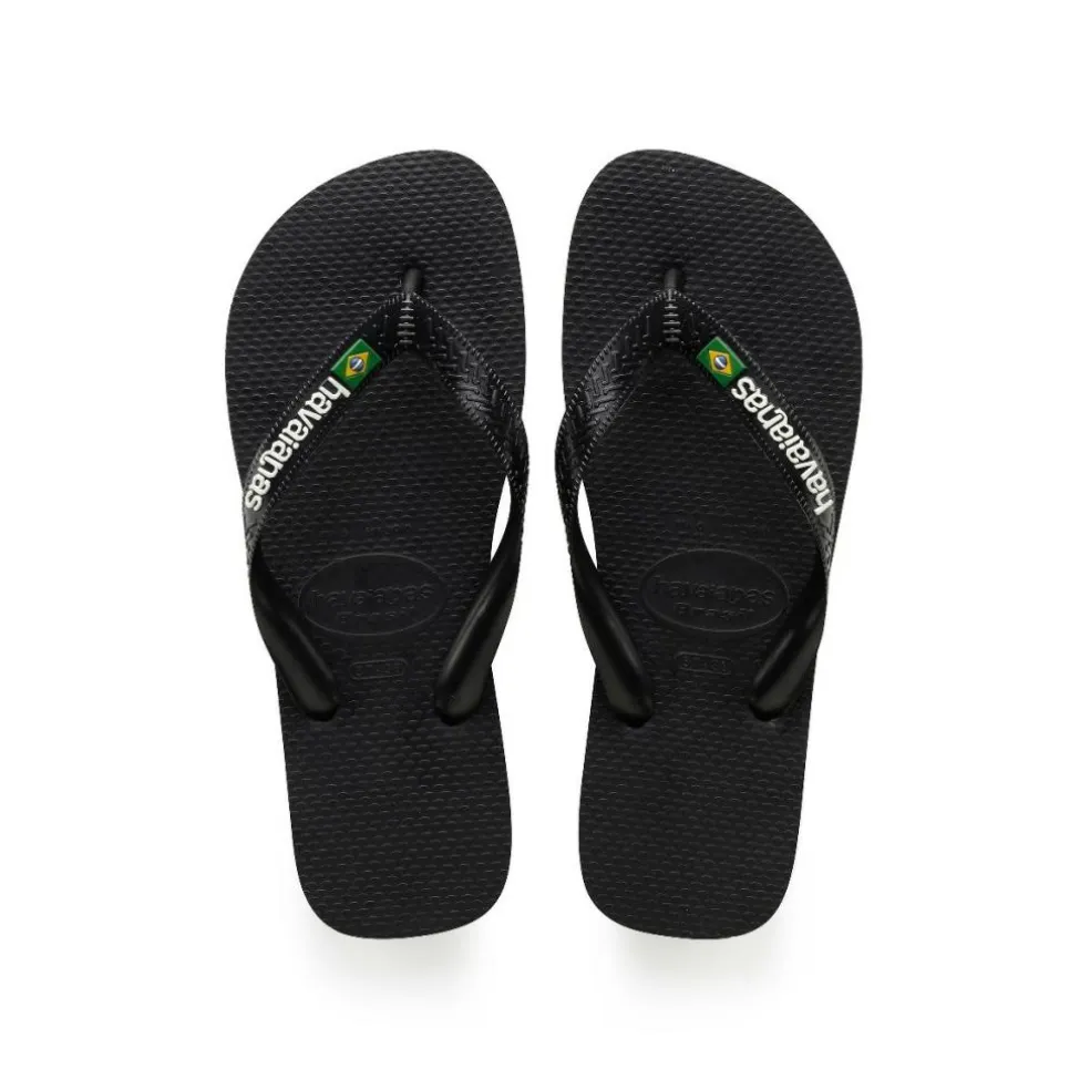 De Havaianas Brasil Logo slippers hebben een simpel design dat onder elke outfit past. Deze Havaianas slippers voelen comfortabel aan door de rubberen zool en blijven goed zitten dankzij het PVC bandje. De zwarte slippers hebben het Braziliaanse logo en vlag op het bandje staan.