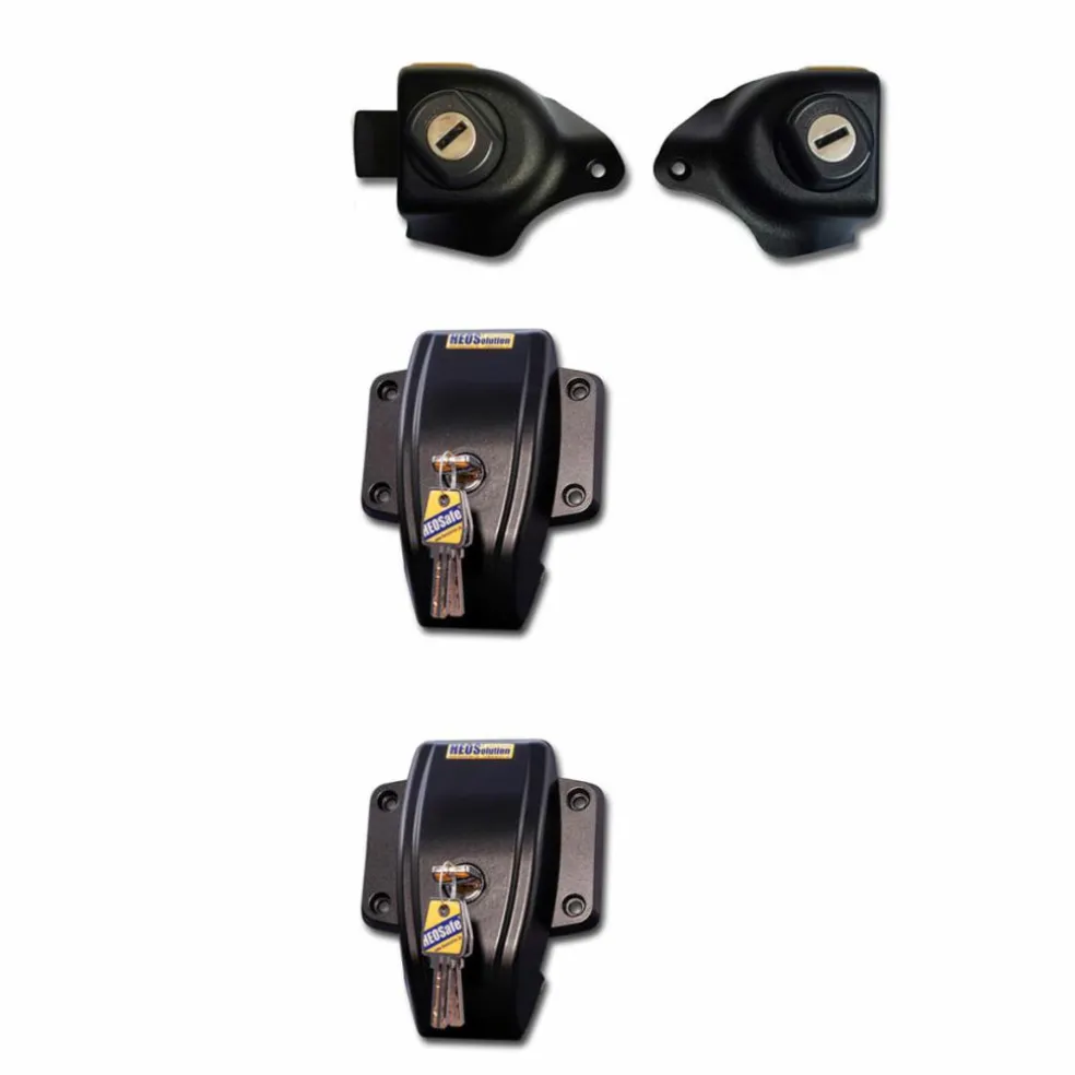 De HEOSolution Van Security set helpt uw voertuig veilig te houden. Deze set bestaat uit twee sloten (links en rechts) voor de cabine, twee externe sloten en vier sleutels. Elke sleutel is gemaakt om alle sloten te bedienen. Met deze set zorgt u voor vergrendeling van de cabine, achterdeur en zijdeur. Het is belangrijk om het interieur te controleren om er zeker van te zijn dat deze set geschikt is voor uw voertuig. Het bouwjaar op het kentekenbewijs is niet leidend.