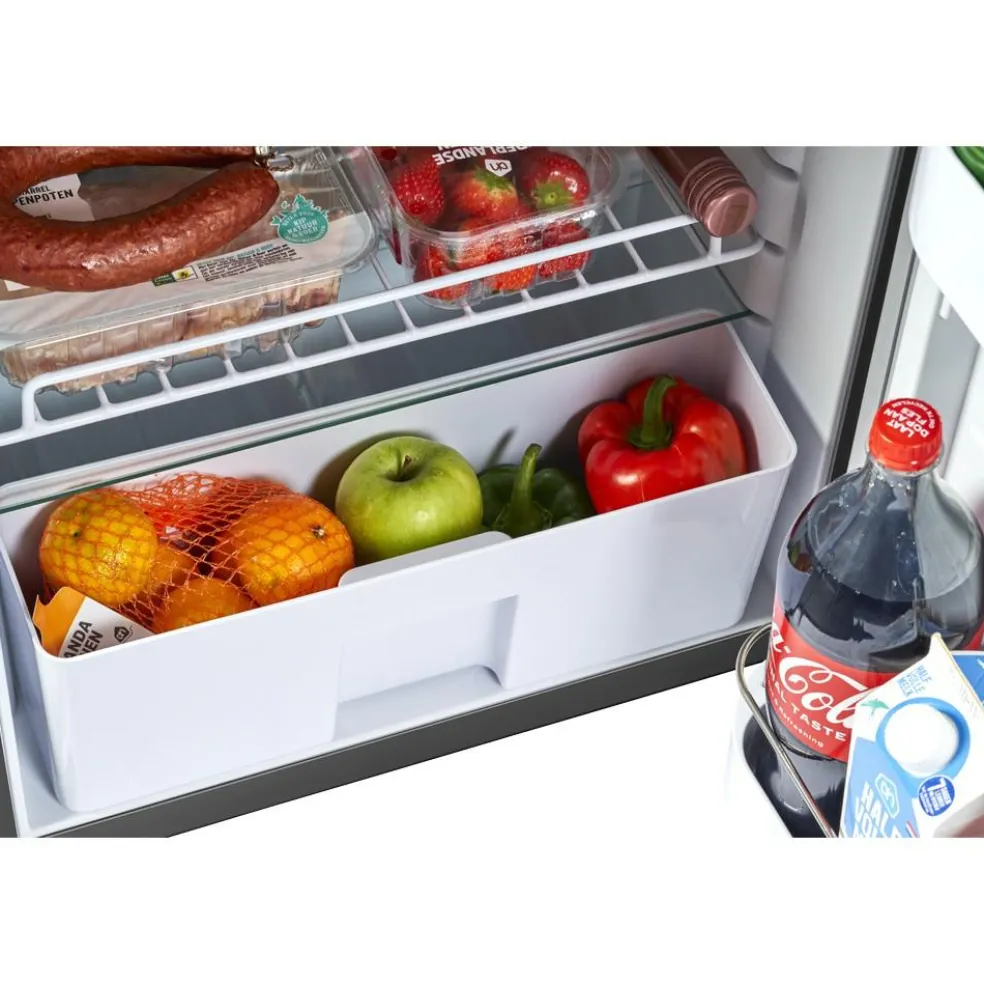 De HyFridge 85 is voorzien van een krachtige compressor met variabele snelheid, die automatisch wordt aangepast om optimale koelprestaties te waarborgen. De intelligente elektronica regelt de ideale snelheid voor een stabiele temperatuur. Daarnaast beschikt de koelkast over een eco-nachtfunctie, die de compressorsnelheid met 35% verlaagt en het display dimt, wat zorgt voor een energiezuinige en stille werking gedurende de nacht.