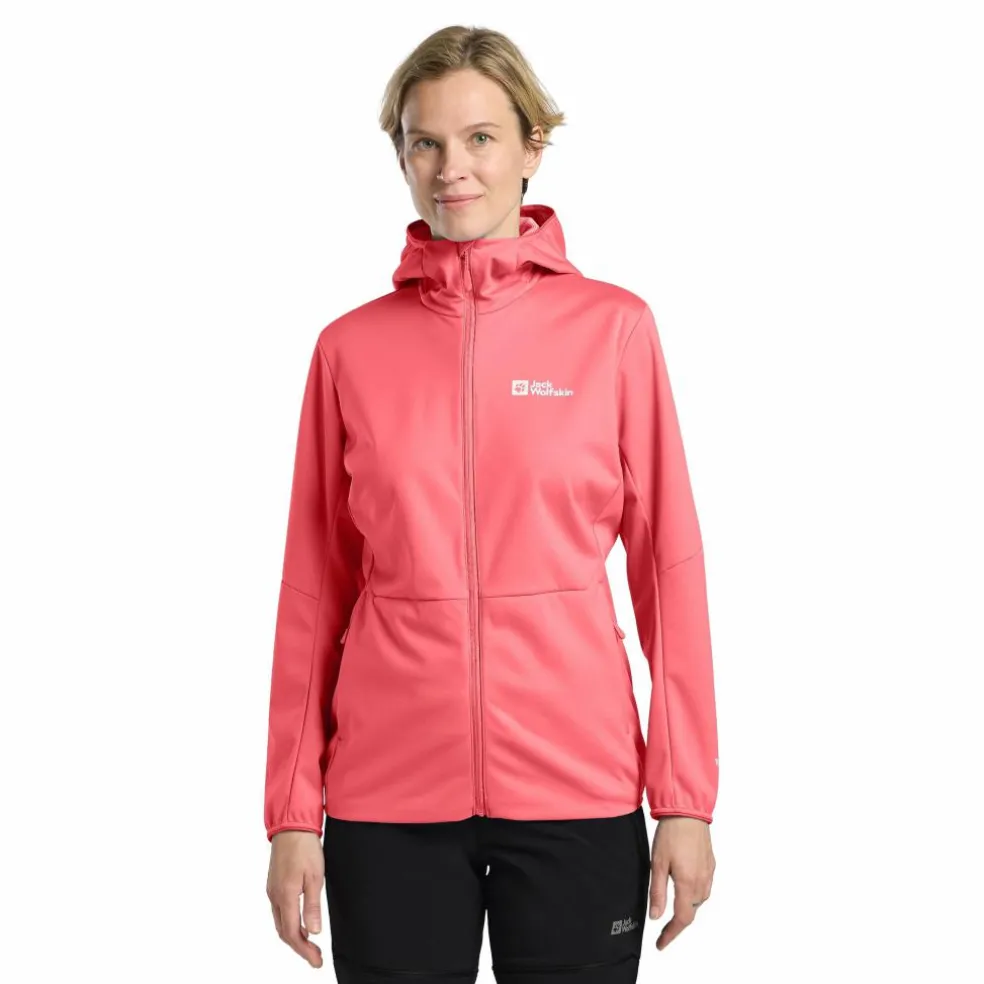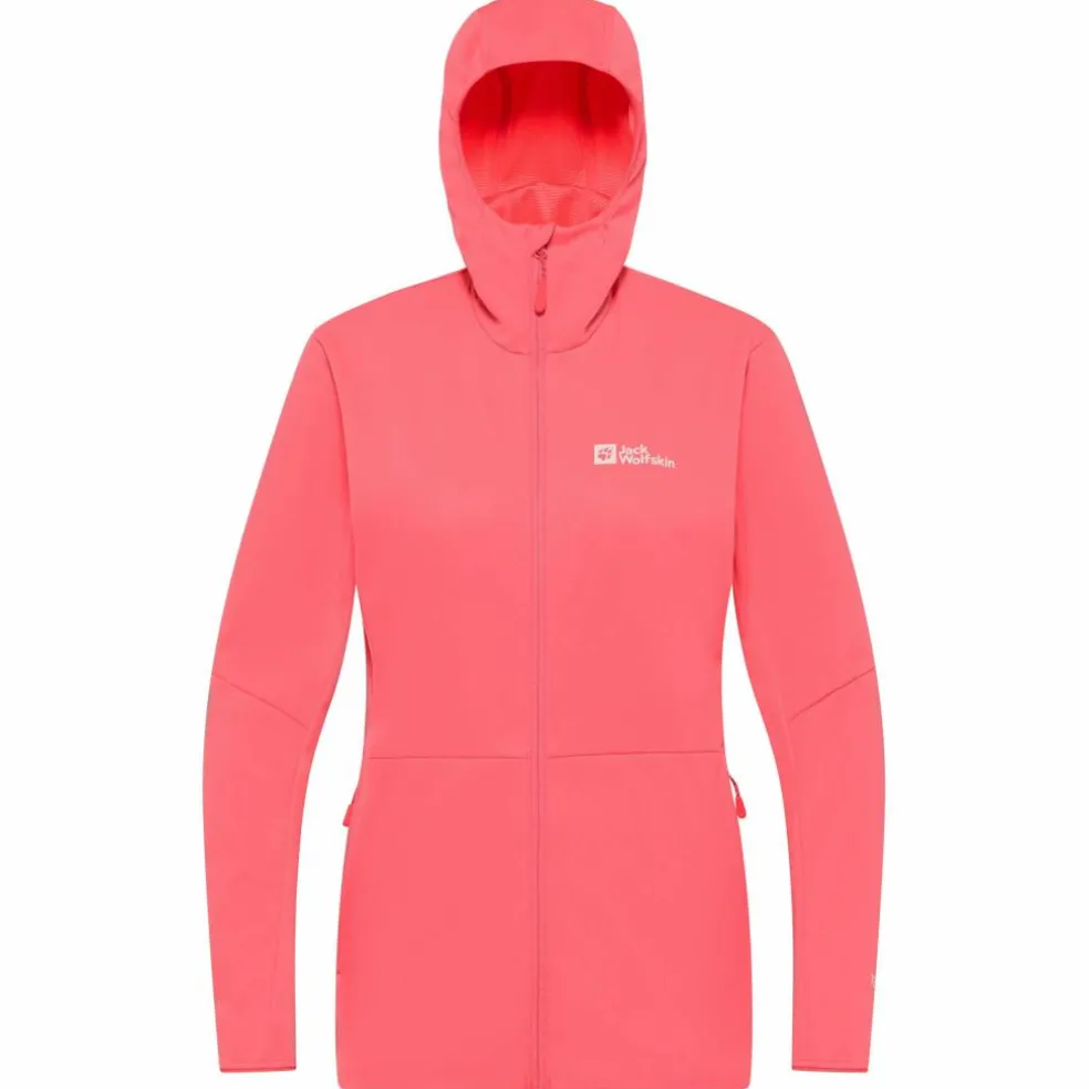 Deze Jack Wolfskin Feldberg softshell jas voor dames is gemaakt van ademend, winddicht en waterafstotend TEXASHIELD PRO SINGLE JERSEY materiaal. Dit Jack Wolfskin jack heeft twee heupzakken met ritsen en een vaste capuchon.