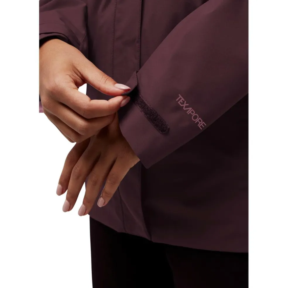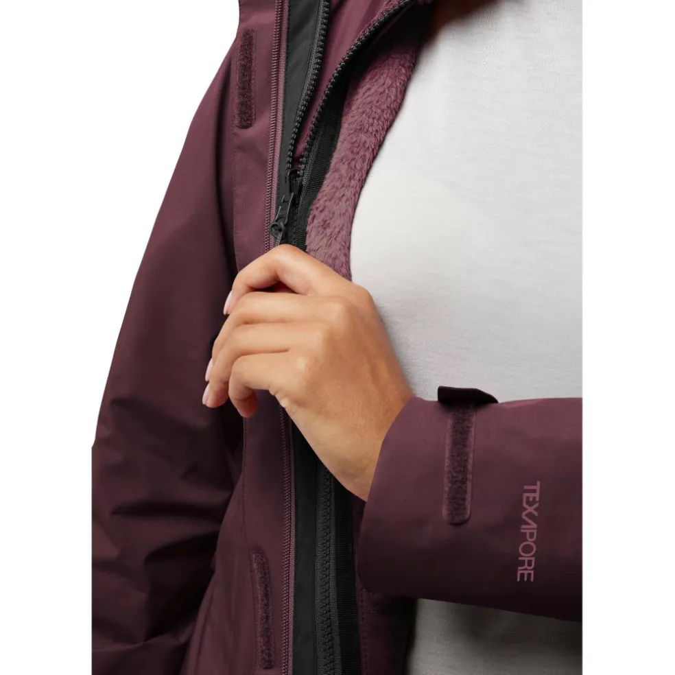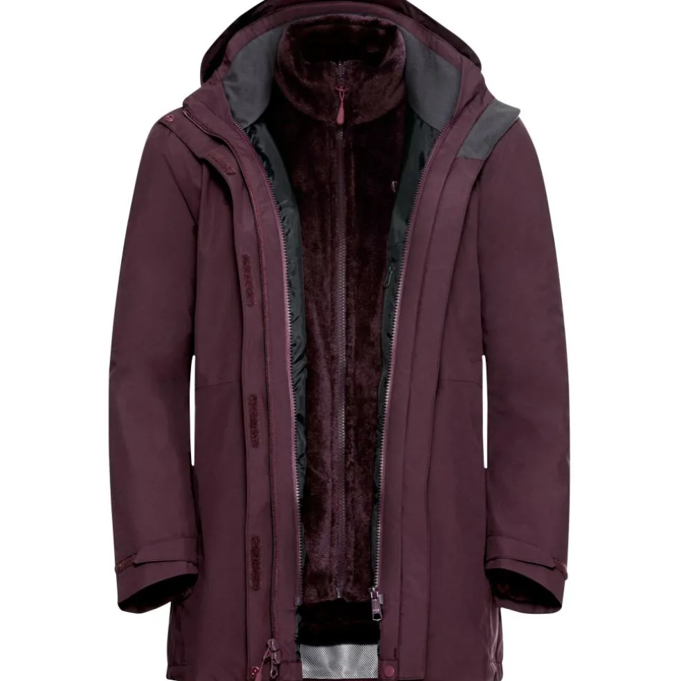 Het Jack Wolfskin Rotwand 3-in-1 outdoor jack met waterdichte, ademende buitenjas en warme binnenjas. Draag afzonderlijk of gecombineerd voor optimale bescherming in elk seizoen. Stijlvol in diepe amaranth kleur.