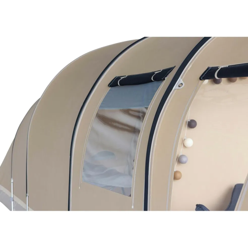 De Karsten Imperia tunneltent is een royale 5-persoons familietent voor wie ruimte, stabiliteit en eenvoudig opzetten belangrijk vindt. Met voorgebogen aluminium stokken en openritsbare stoksleuven zet u de tent soepel en overzichtelijk op, terwijl het vaste grondzeil direct voor een schone, droge woonruimte zorgt. Zo biedt de Karsten Imperia vertrouwen bij langere vakanties, seizoenskamperen en weekenden met gezin of vriendengroep.