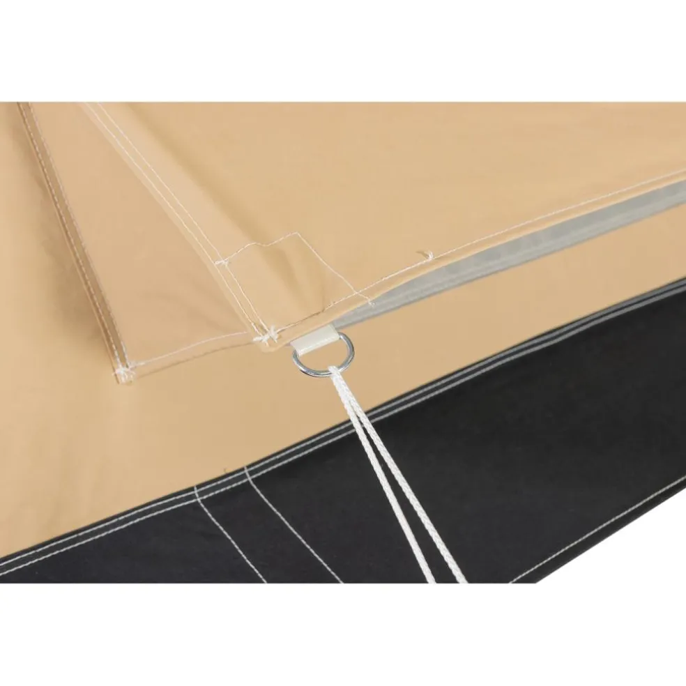 Het buitendoek bestaat uit 310 g/m² katoen, waardoor de tent natuurlijk ademt en condensvorming beperkt blijft. Dat voelt frisser aan bij warm weer en helpt juist bij wisselvallig weer om het binnenklimaat stabiel te houden. Het vaste bisonyl grondzeil sluit kuipvormig aan op de wanden, zodat spatwater, vuil en ongedierte buiten blijven en u de leefruimte eenvoudig schoonhoudt. De aluminium tentstokken combineren stijfheid met relatief laag gewicht, wat niet alleen voor stormvaste booglijnen zorgt maar ook het opzetten lichter maakt.