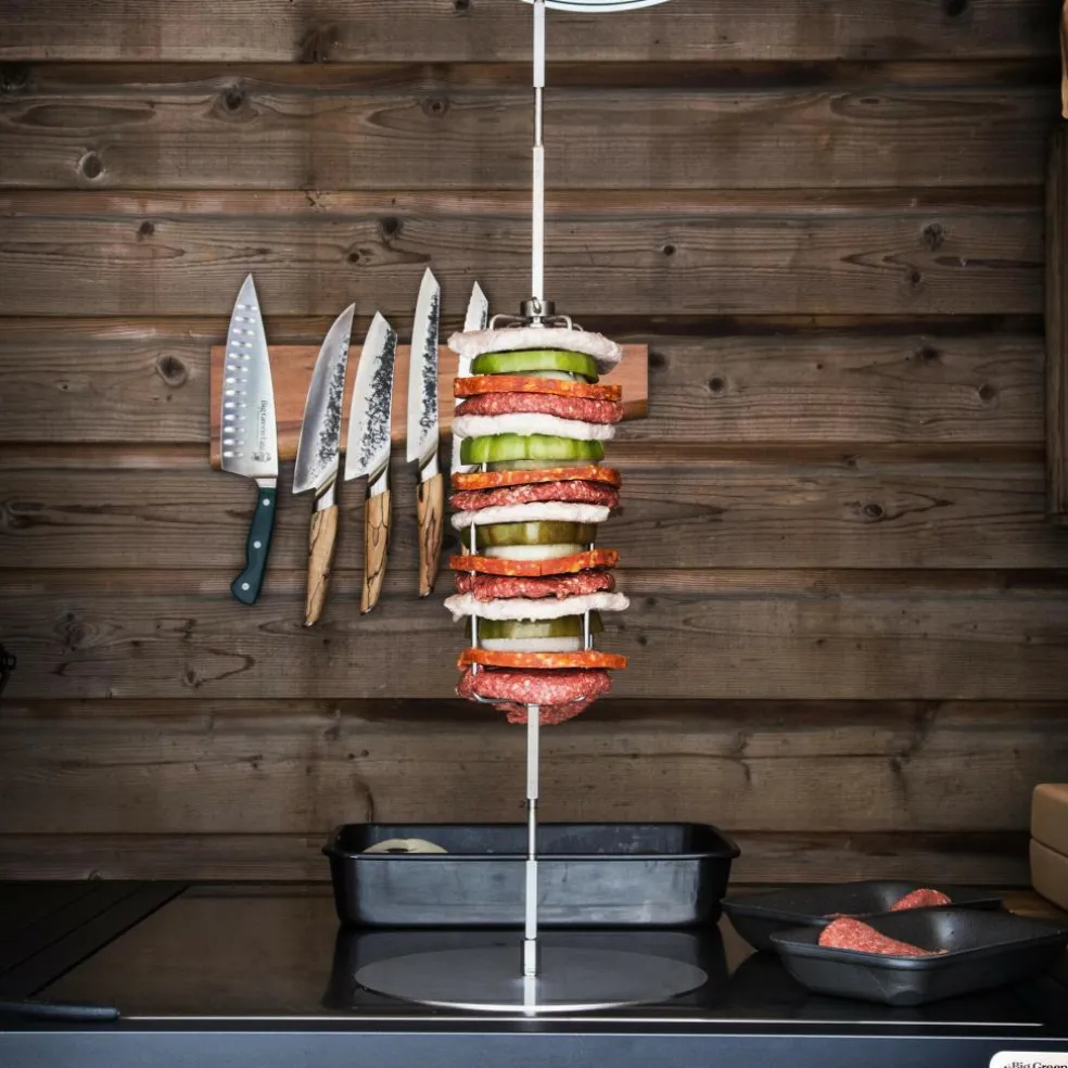 De LetzQ Spit Ashouder is een ronde RVS plaat met een doorsnede van 250 millimeter waar u uw spit as zonder handvat op kunt draaien. Hierdoor is de LetzQ ashouder een handige houder waardoor u twee handen vrij heeft om de spit te vullen met ingrediënten. Mocht u uw product direct van het spit willen snijden, is deze ashouder ook zeer handig.