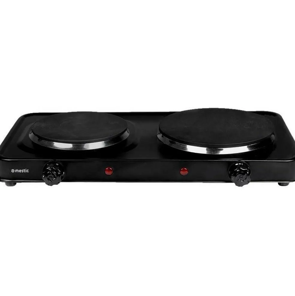 Het Mestic MKT-200 kooktoestel is een veelzijdige 2-pits kookplaat, geschikt voor zowel op de camping als thuis. Dankzij het vrijstaande ontwerp biedt het voldoende ruimte voor grotere pannen. Met een totaal vermogen van 2500 watt, verdeeld over een kleinere pit van 1000 watt en een grotere pit van 1500 watt, bereidt u eenvoudig diverse gerechten. Beide pitten zijn afzonderlijk te bedienen via de draaiknoppen met de gemarkeerde aanbevolen posities. Een rood indicatielampje laat zien wanneer het kooktoestel in gebruik is. De thermostaat met instelbare standen zorgt voor nauwkeurige temperatuurregeling. Voor extra veiligheid is de MKT-200 uitgerust met een hittebestendige behuizing, oververhittingsbeveiliging en antislipvoetjes voor een stabiele plaatsing.
