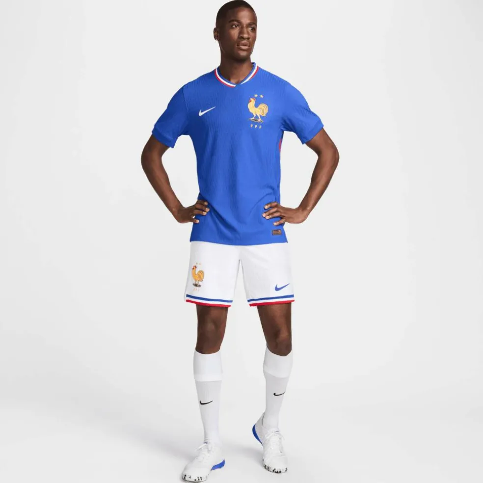 De nieuwe Nike Frankrijk thuisshort 24 – 25 is een comfortabel voetbalbroekje wat gemaakt is van gerecycled polyester. Om het lichaam droog en daarmee comfortabel te houden is de Dri-FIT technologie toegepast wat zweet snel naar de buitenkant van het materiaal transporteert waar het kan verdampen. De tailleband van dit broekje is elastisch en heeft een trekkoord.
