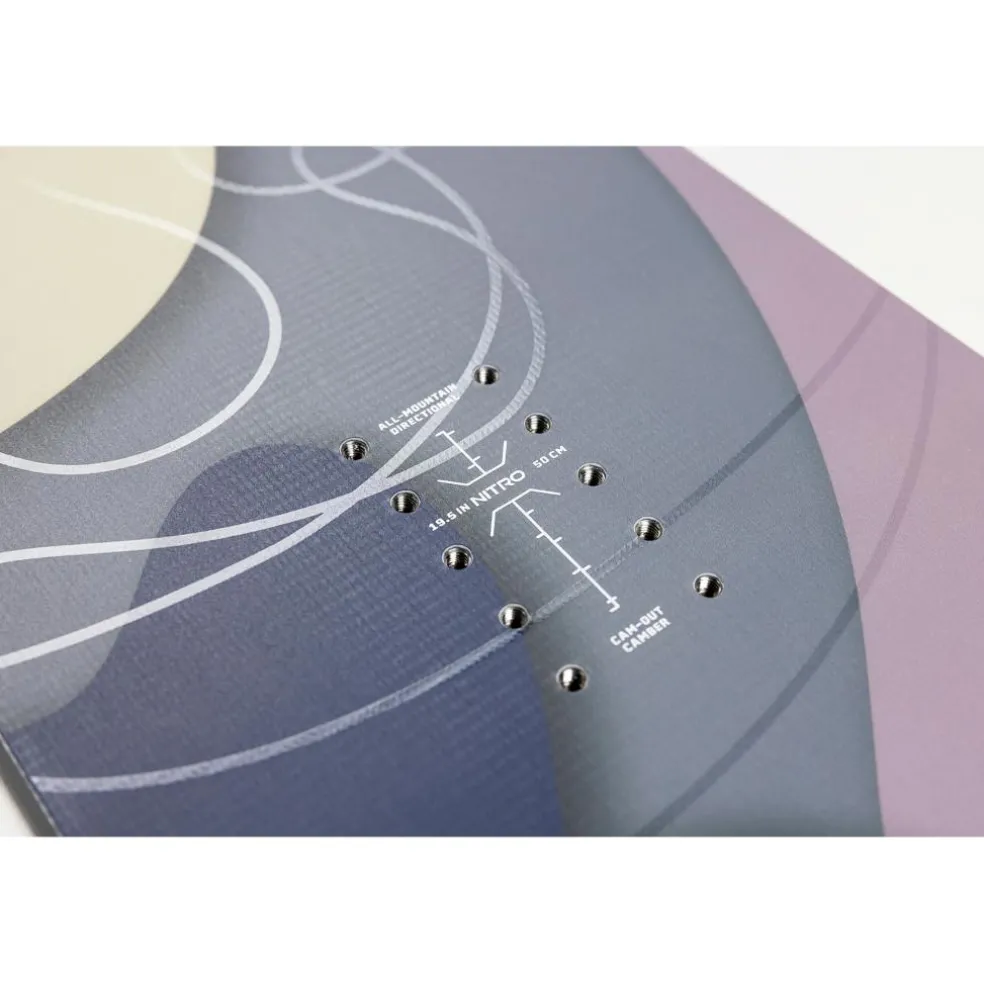 Dit lichtgewicht Nitro Nova 25 – 26 snowboard voor dames zorgt voor een ideale mix van flexibiliteit, respons en gevoel. Dit snowboard is perfect voor vloeiende overgangen, veel controle en goede grip.