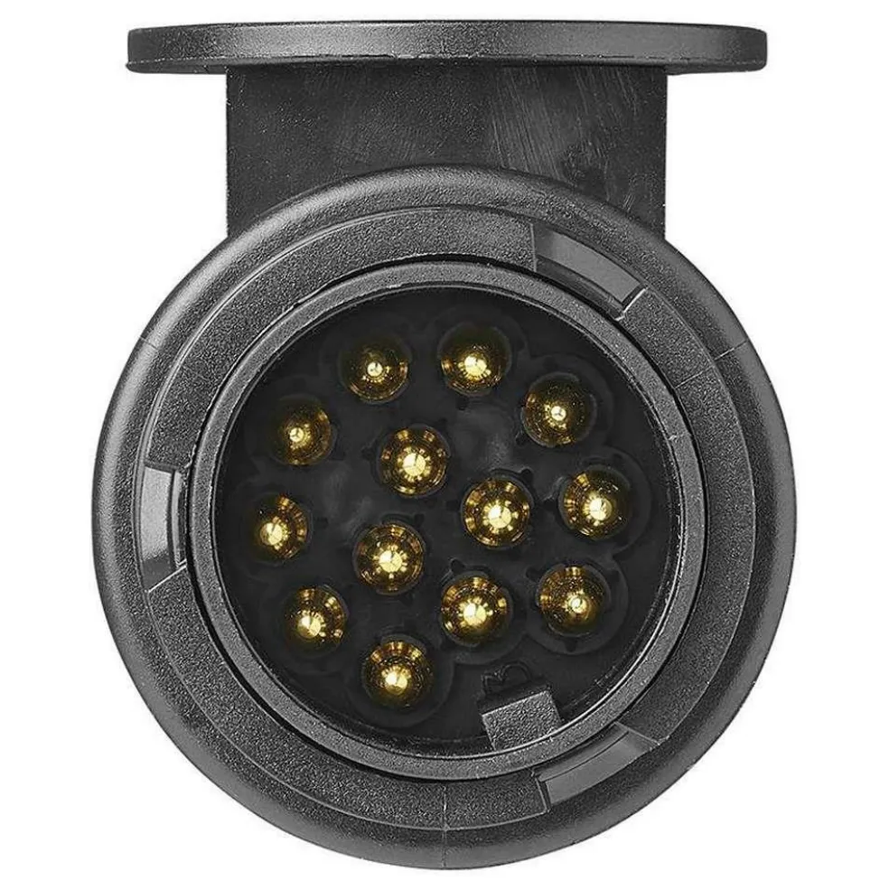 De ProPlus 13-polige Jaeger stekker kunt u aansluiten op een caravan, aanhanger of vouwwagen. Met de bajonetsluiting zit de stekker stevig in de contactdoos. De stekker is voorzien van alle polen om de rij-verlichting aan te sluiten, inclusief mistlampen en achteruitrijd-lampen. De stekker biedt ook de mogelijkheid om de binnenverlichting van een koelkast aan te sluiten.