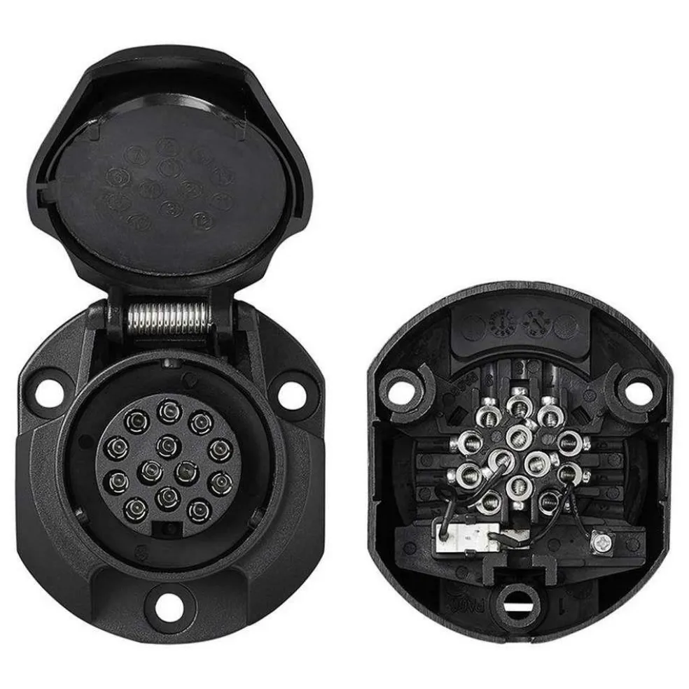 De ProPlus 13-polige Jaeger stekkerdoos met micro-switch is gemaakt om het licht op een aanhanger, vouwwagen, fietsenrek of caravan mee aan te sluiten. Daarnaast kun je, dankzij de aanwezigheid van maar liefst 13 polen, bijvoorbeeld ook de koelkast in jouw caravan aansluiten. Een microswitch zorgt er voor dat de mistverlichting van de auto uitgeschakeld wordt en die van de aanhanger ingeschakeld wordt op het moment dat de kabelboom aangesloten wordt.