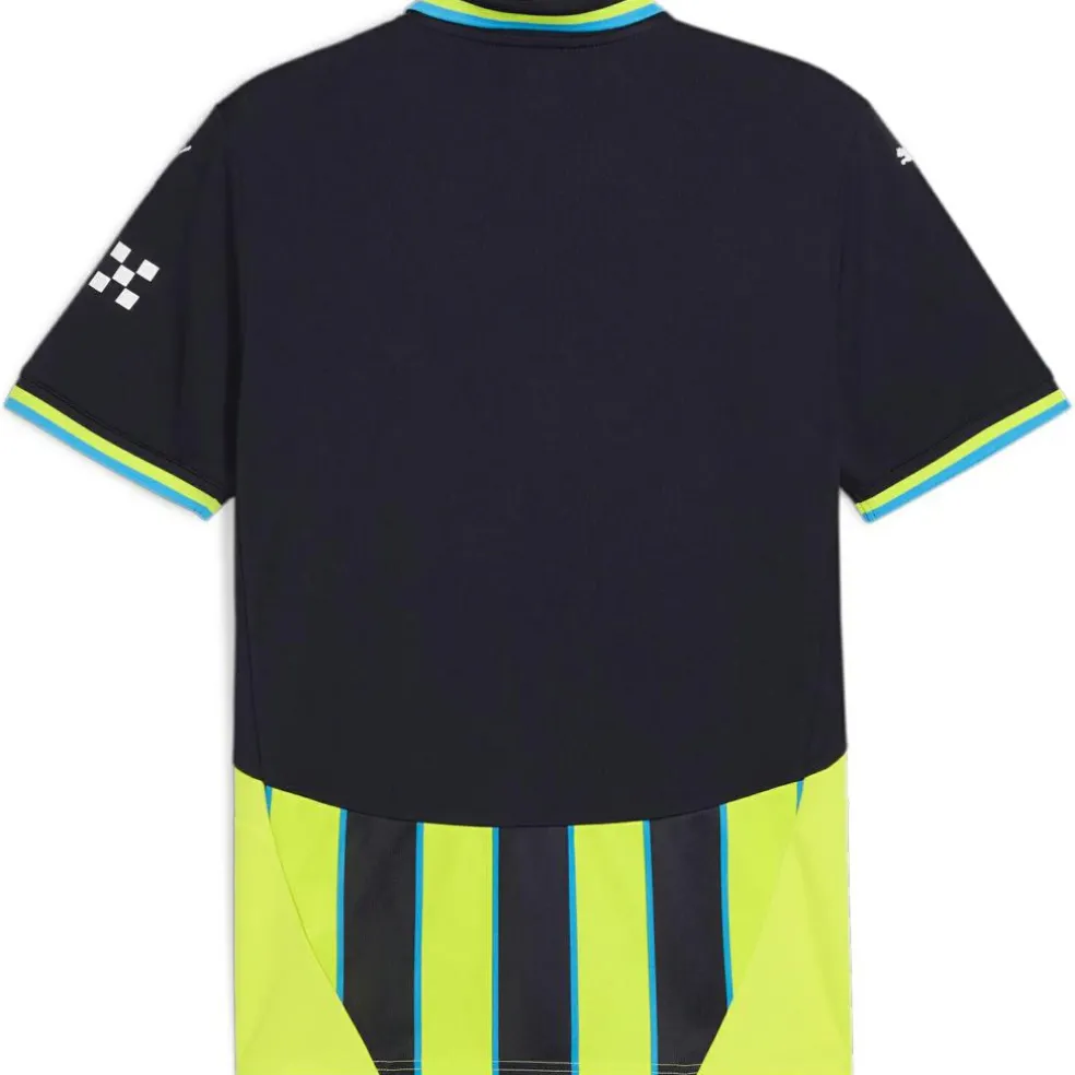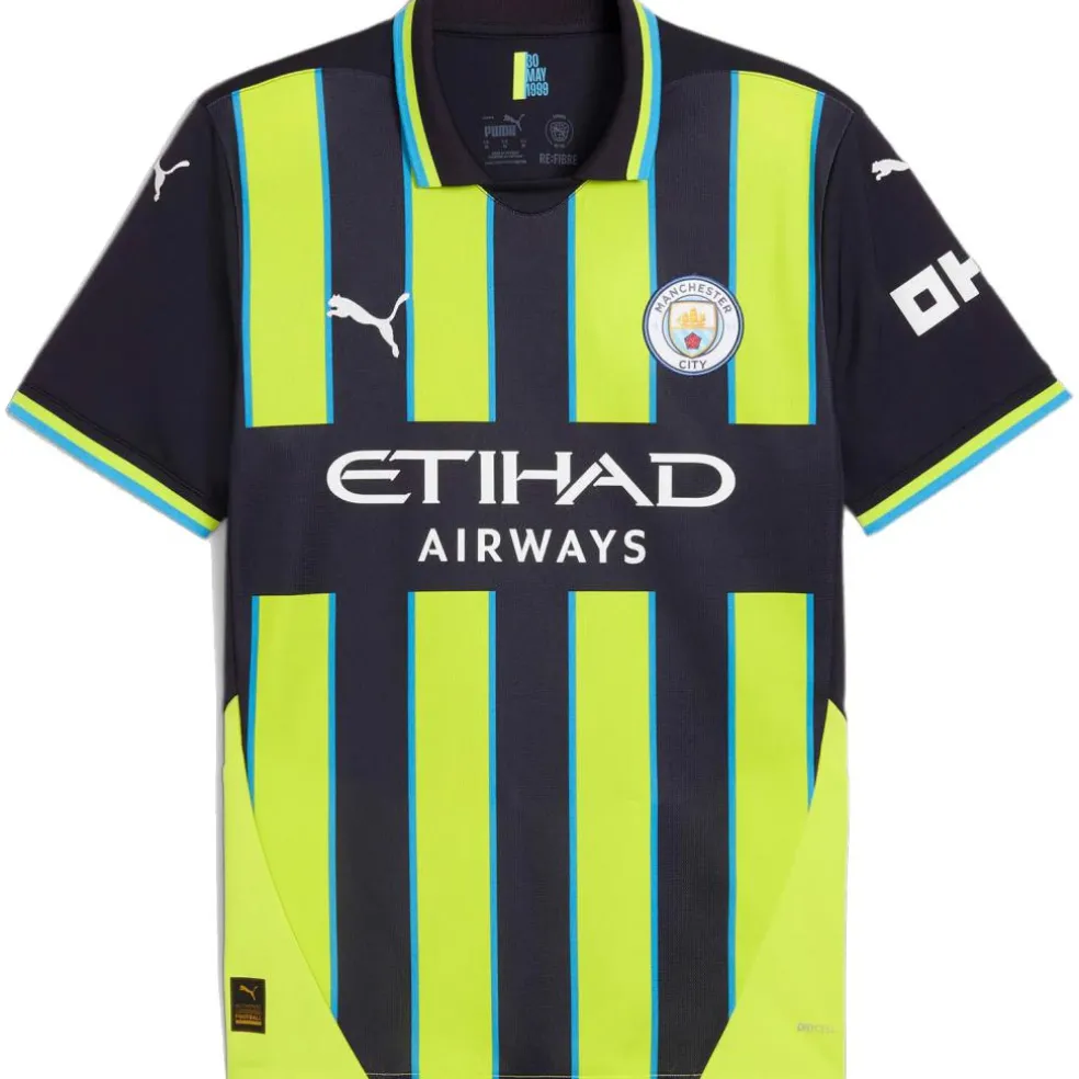Dit Manchester City uitshirt 24 – 25 voor heren heeft de iconische kleuren en strependesign. Het shirt droogt snel en heeft een aansluitende maar soepele pasvorm.