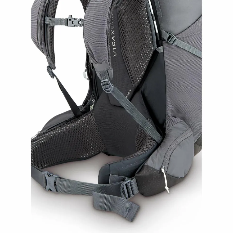 De Rab Exion ND backpack van 65 liter voor vrouwen is voorzien van een slim V-TRAX draagsysteem dat volledig contact maakt met de rug. Dit zorgt voor een stabiele pasvorm, goede ondersteuning en maakt het comfortabeler om zware lasten te dragen. Dankzij het smallere ontwerp sluit deze backpack perfect aan op het vrouwenlichaam, wat zorgt voor extra comfort tijdens langere tochten. De tas heeft een praktische indeling met diverse opbergvakken, waaronder een ruim hoofdvak, een bovenvak, een voorvak, zijvakken voor bijvoorbeeld een waterfles en heupvakjes voor kleinere spullen. Ook wordt er een regenhoes meegeleverd, en kunt u uw wandelstokken bevestigen aan de zijkant van de backpack. Deze backpack is geschikt voor personen met een ruglengte van 43 – 48 cm.