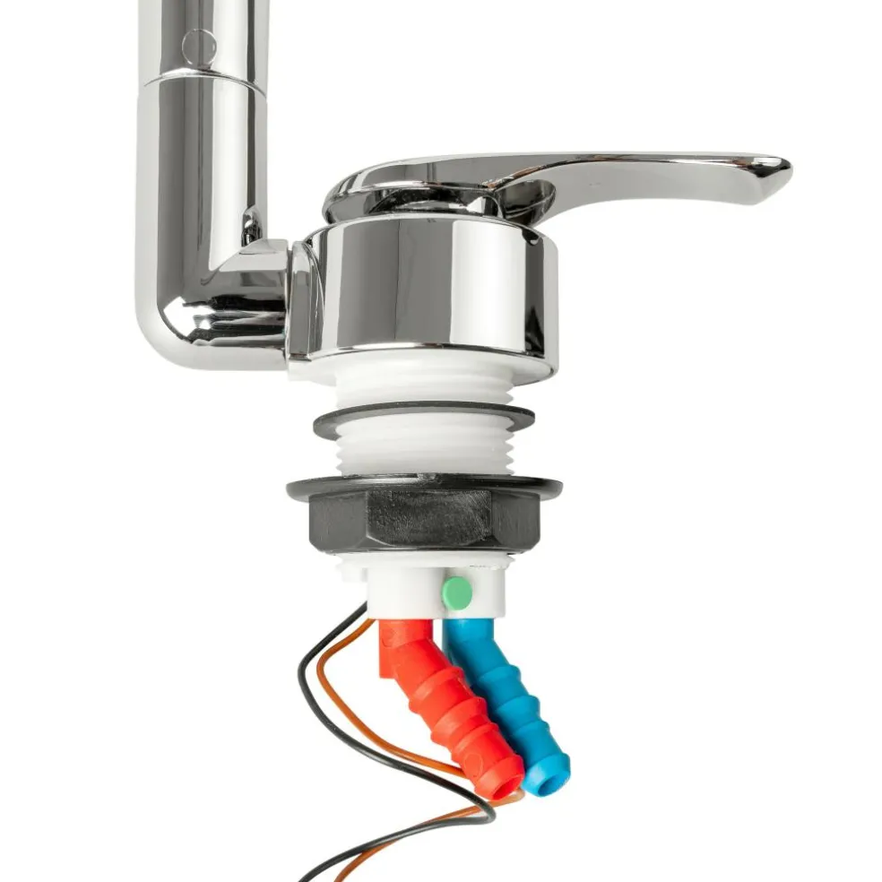 Deze Reich Keramik Samba A mengkraan is gemaakt van hoogwaardig kunststof en een keramisch binnenwerk. De temperatuur en hoeveelheid water is makkelijk te reguleren. Gezien de lage montagehoogte van 40 millimeter is de kraan geschikt voor kleinere plaatsen. De kraan komt met een waterdichte microschakelaar en heeft een boorgat van 33 millimeter. Verder heeft de Samba kraan een A-aansluiting.