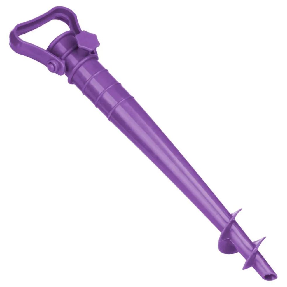 De Safarica parasolboor paars is een kunststof boor die ideaal is voor bijvoorbeeld een dagje strand. De Safarica parasolboor heeft een handvat om de boor nog makkelijker in de grond te kunnen draaien. Aan de bovenzijde zit een draaiknop om de parasolstok mee vast te klemmen. Deze parasolboor is met name geschikt voor kleine strandparasols.