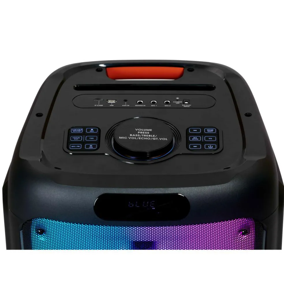 Met de Salora PartySpeaker XXL1 kun je een fantastisch karaokefeestje organiseren. Deze Salora speaker heeft twee 12 inch speakers met een vermogen van 1200 watt en twee microfooningangen. De speaker wordt geleverd met één microfoon en heeft een ingebouwde accu, waardoor de speaker 5 uur lang draadloos te gebruiken is. U kunt uw muziek afspelen op deze speaker via een USB, SD kaart of via een Bluetooth verbinding. Daarnaast heeft deze speaker een kleurrijke LED display.