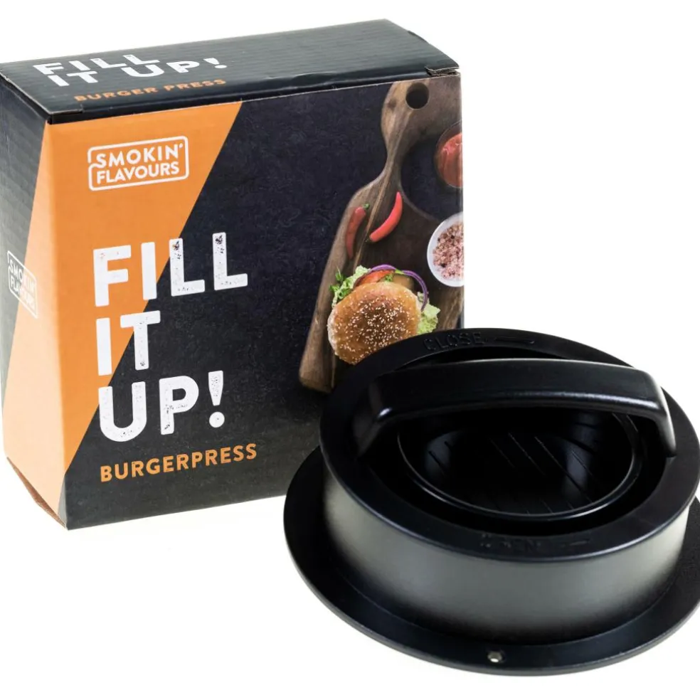Met de Smokin’ Flavours hamburgerpers kunt u gemakkelijk uw eigen hamburgers maken. U hoeft enkel het gehakt in de Smokin’ Flavours hamburgerpers te leggen en deze aan te drukken. De pers is ook geschikt voor het maken van gevulde hamburgers. Na gebruik is de pers makkelijk te reinigen door het vaatwasserbestendige materiaal.